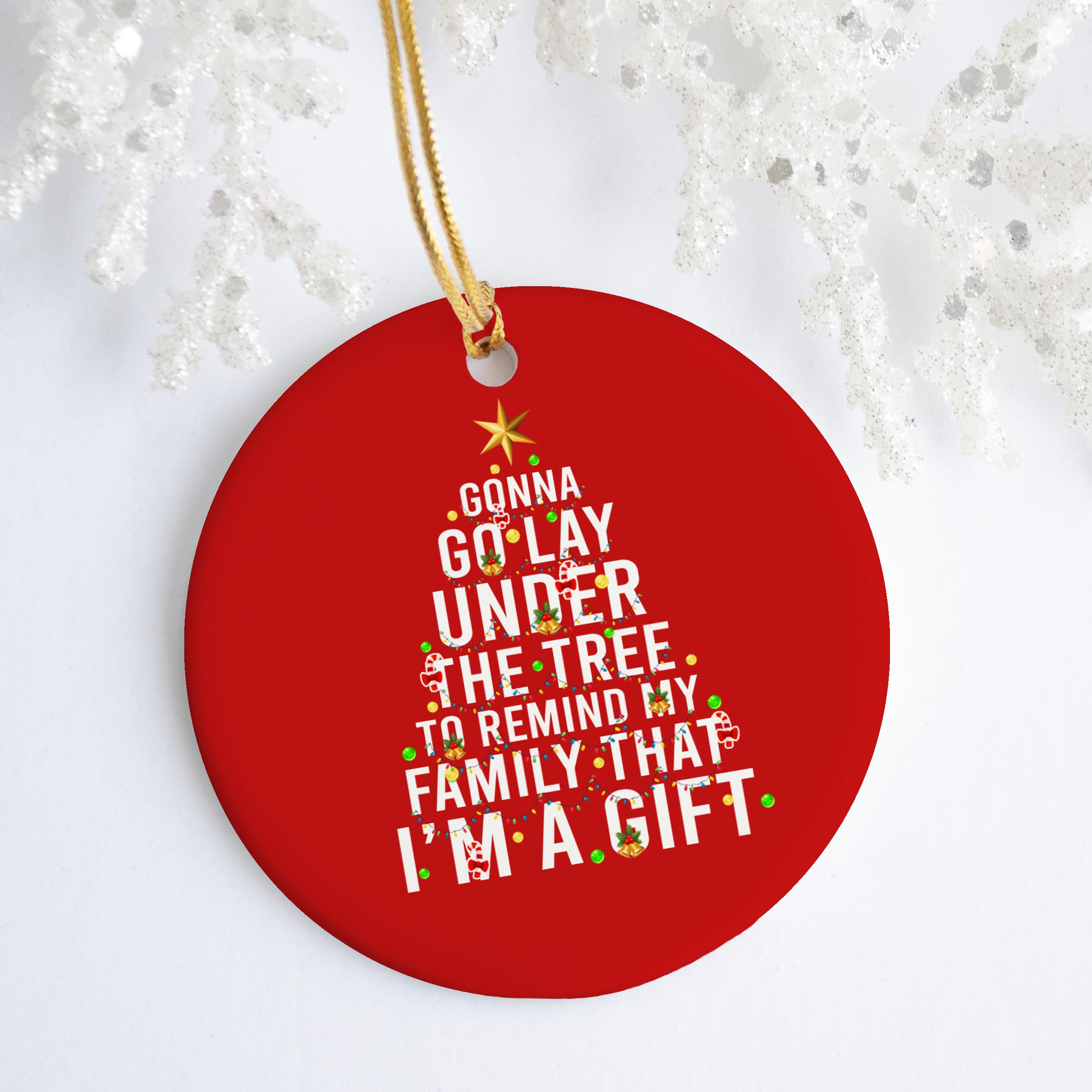 Are you spending too much time to find creative merchandise for you or suitable & special gifts for your mommy, your daddy, your son, your daughter, your children, your friends or someone you love? The struggle is over because we have various Humorous Saying Ornament, Funny Christmas Sayings Ornaments, Funny Holiday Quotes Christmas Ornament, Ornament Sayings, Christmas Quotes Shirt, I Am the Gift Christmas Shirt, Gonna Go Lay Under the Tree Shirt, Gonna Go Lay Under the Christmas Tree, Gonna Go Lay Under the Tree Long Sleeve Shirt which will make perfect presents for your beloveds. In order to make your present stand out, we have created lots of unique and awesome customized photo gifts & personalized designs.