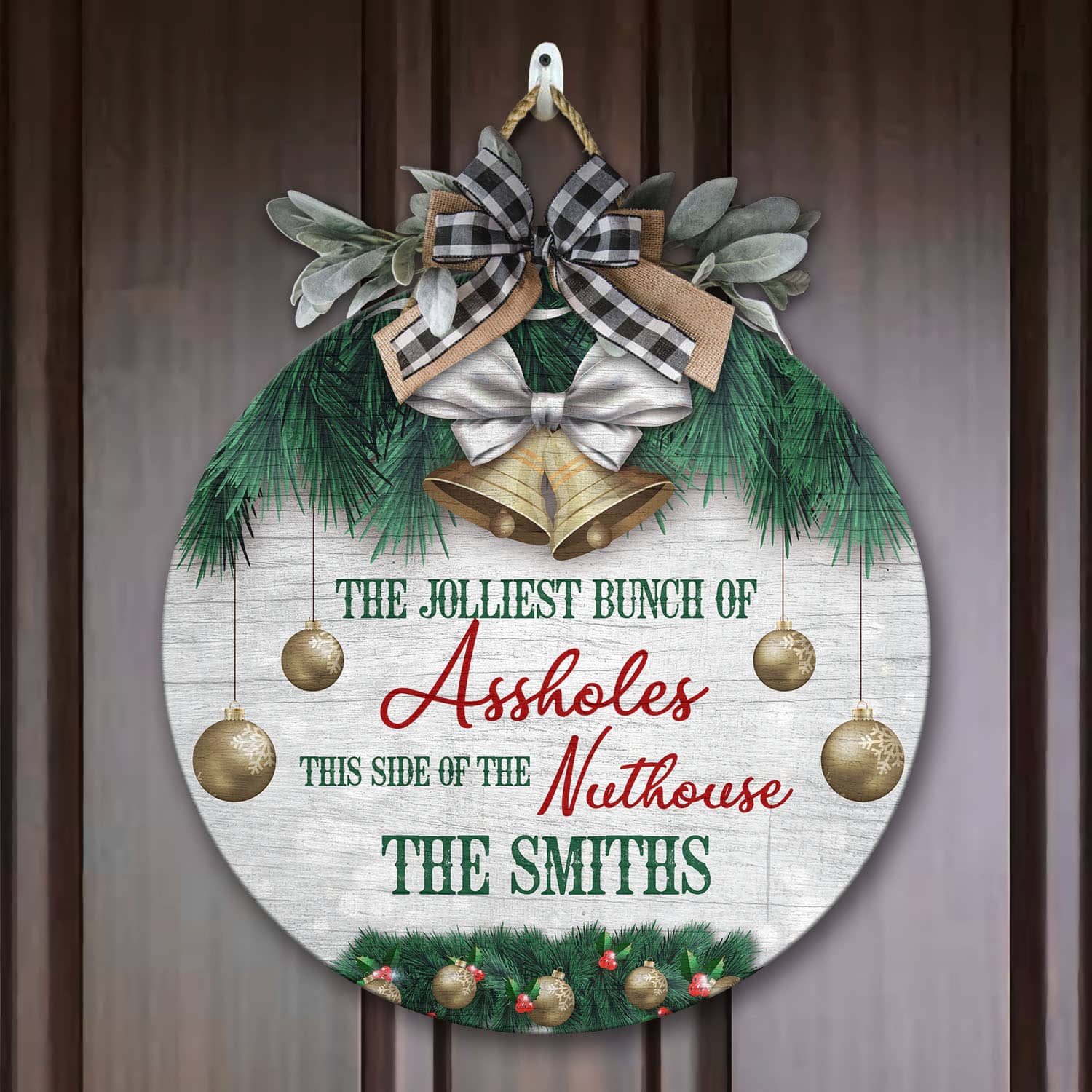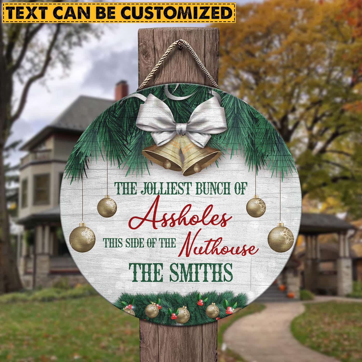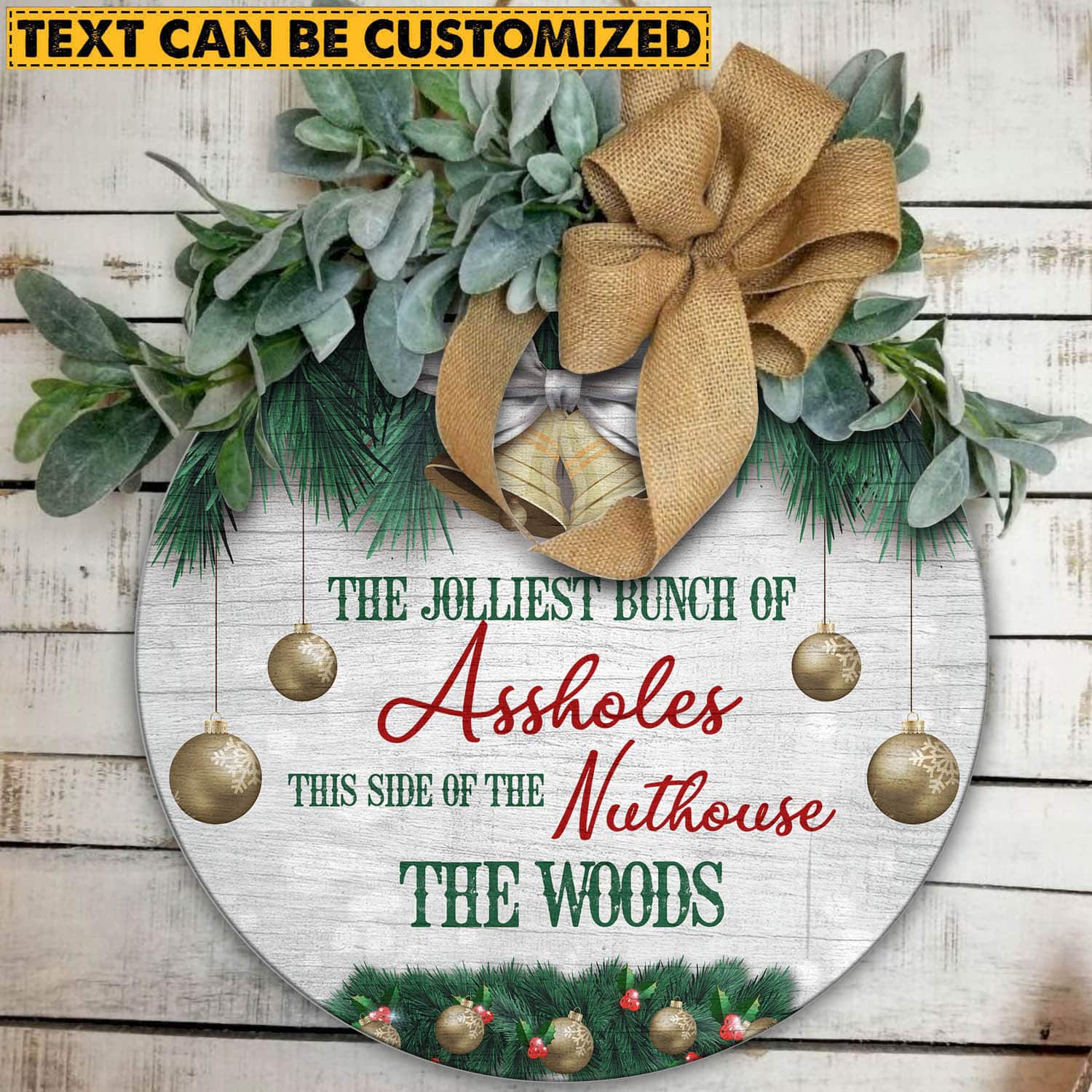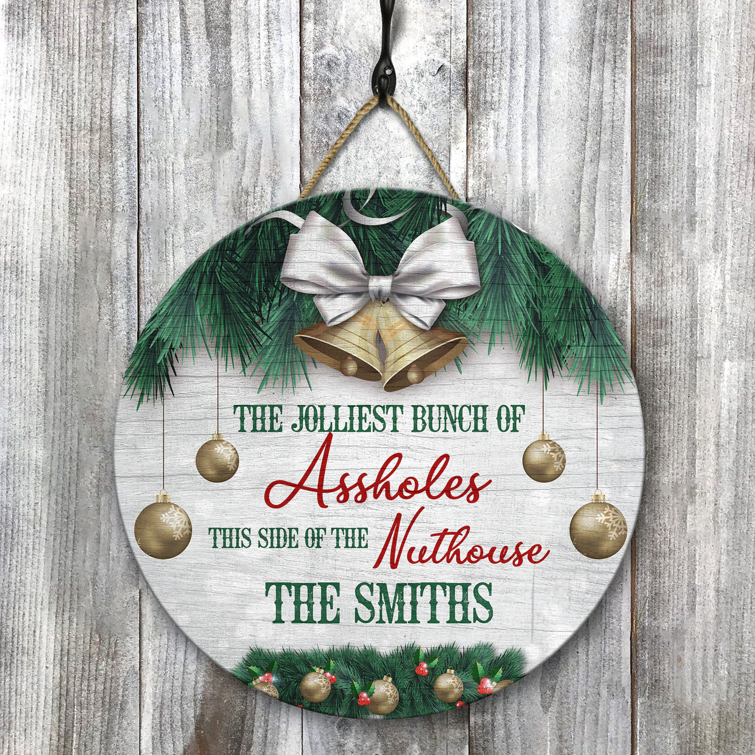 Let’s Shop Custom The Jolliest Bunch Of Assholes This Side Of The Nuthouse Circle Wooden Door Sign – Front Porch Sign!