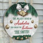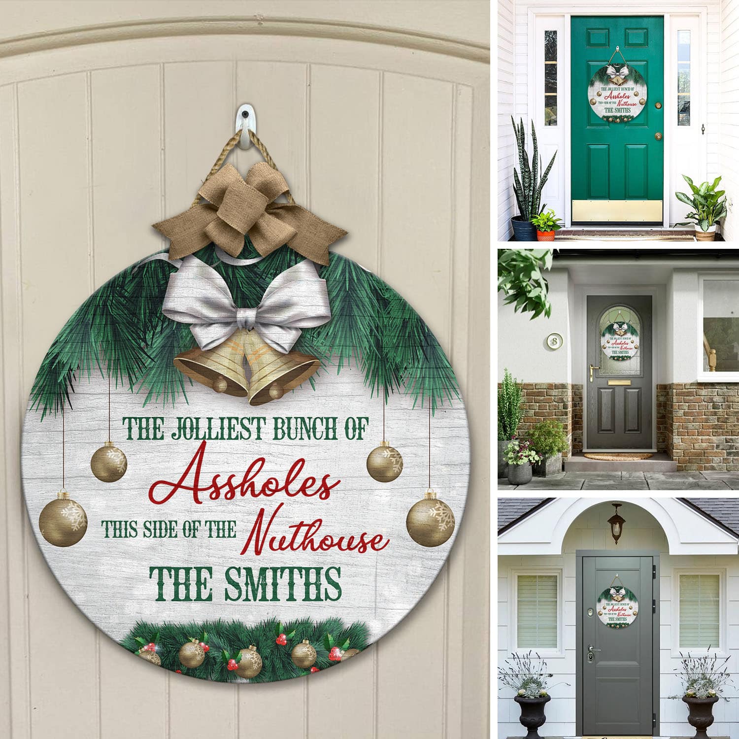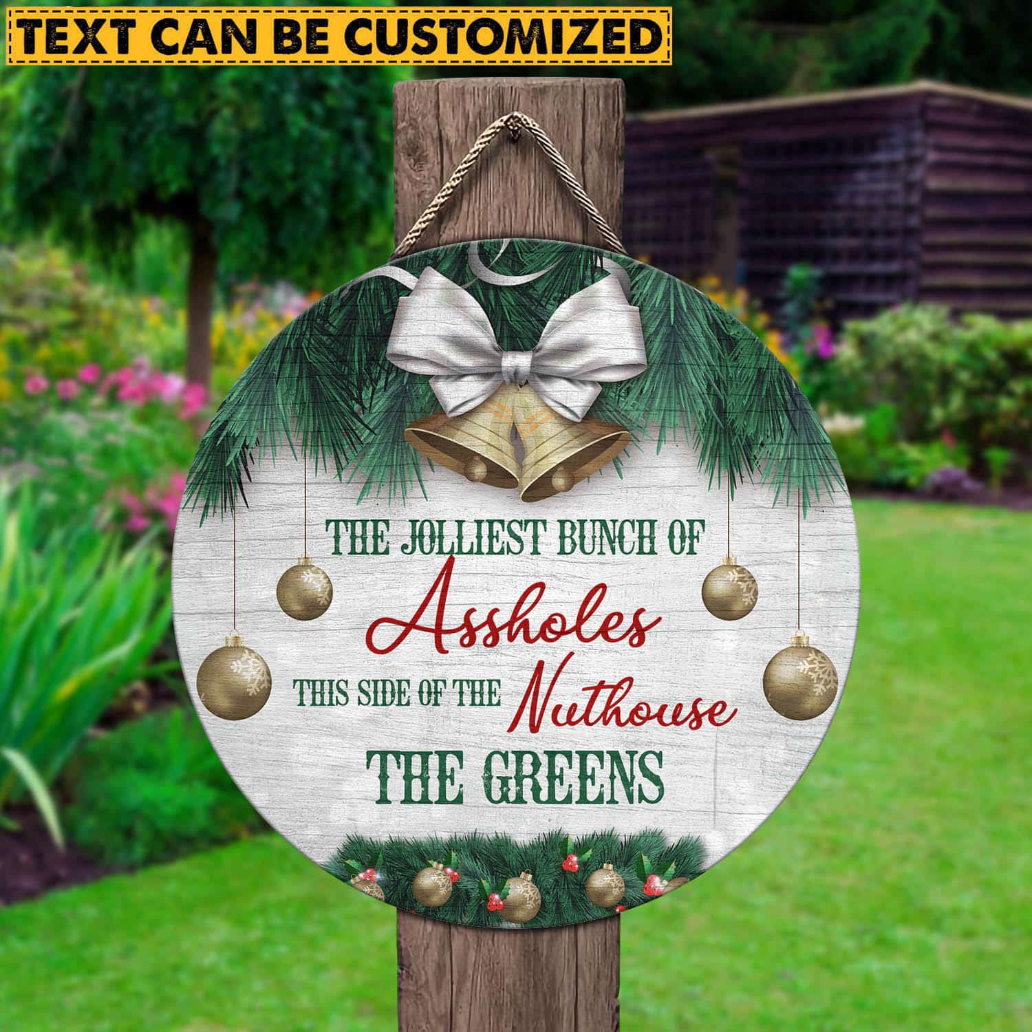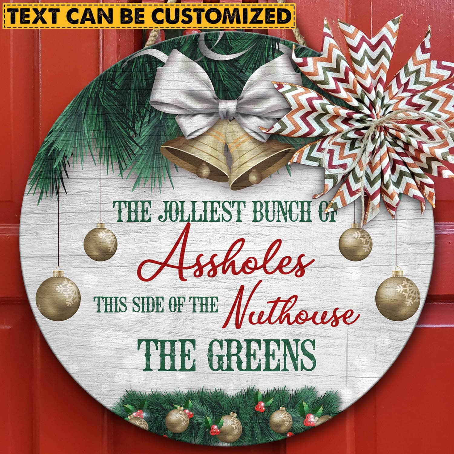Let’s Shop Custom The Jolliest Bunch Of Assholes This Side Of The Nuthouse Circle Wooden Door Sign – Front Porch Sign!