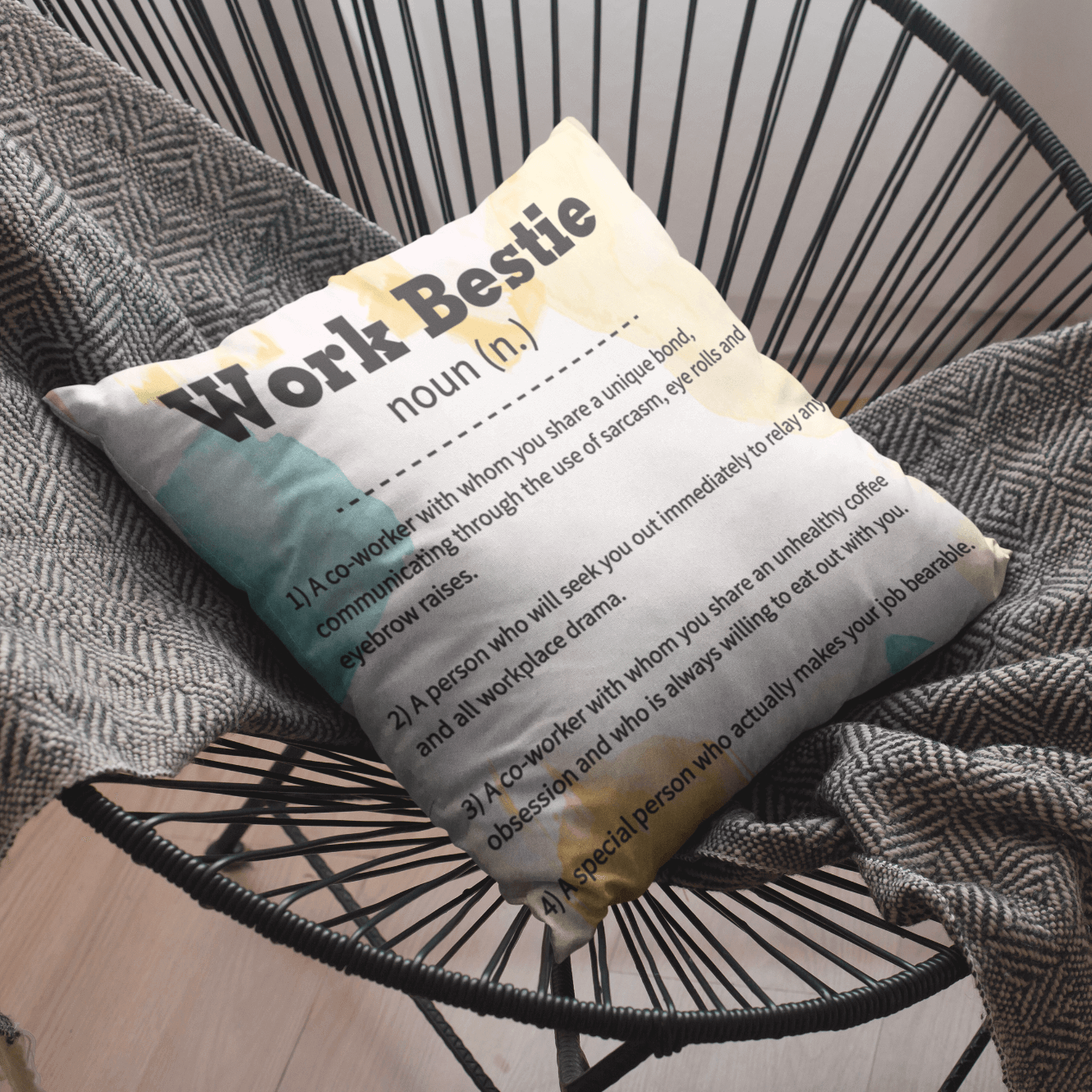 At CubeBik, besides throw pillows, we also offer tees, hoodies, sweaters, raglans, tanks, wall arts, canvases, posters, mugs, blankets, engraved jewelry, personalized necklaces, printed face masks, tote bags, hats, accessories and more on our website, so do not miss our other Work Bestie Gifts, Work Bestie Gifts for Women, Work Besties Gifts, Work Bestie Birthday Gift, Funny Work Bestie Gifts, Gift for Work Bestie, Work Bestie Retirement Gifts, Funny Co-Worker Gifts, Funny Co-Worker Gifts for Women, Funny Co Worker Gift Ideas related merchandise. Moreover, all the products are made-to-order and one of a kind custom designs you can’t get elsewhere in normal stores. Let’s discover CubeBik.com now and find your favorite personalized items. We can’t wait to surprise and build beautiful memories with you and your loved ones.