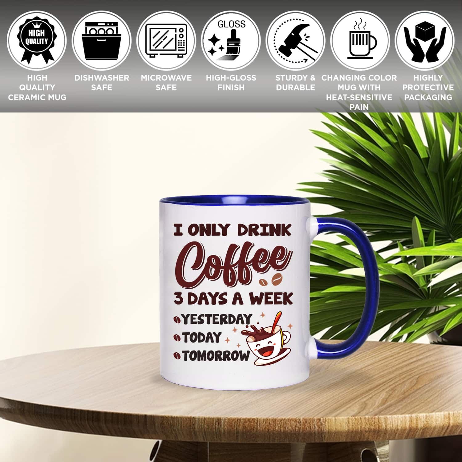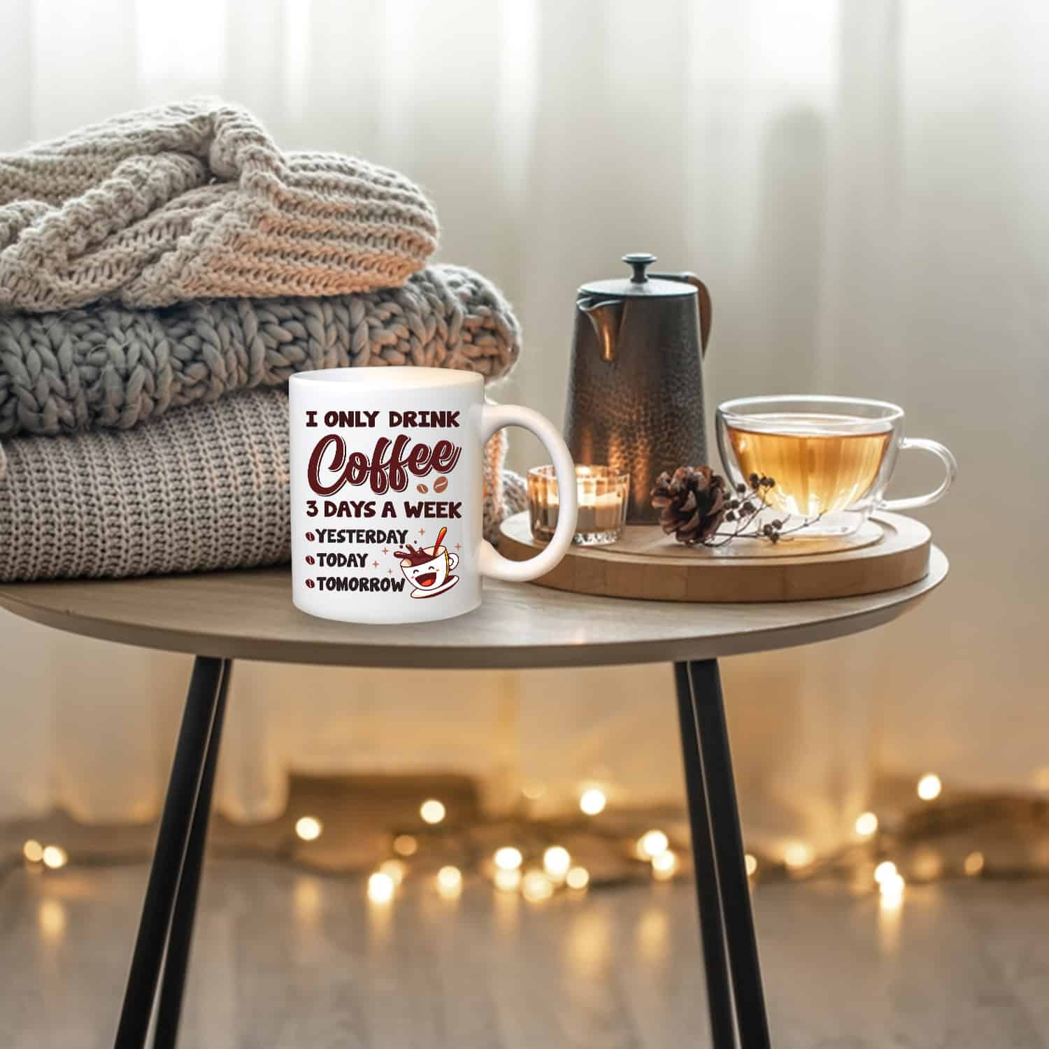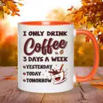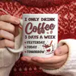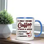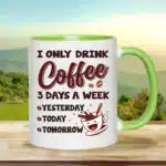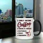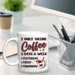 Let’s Shop I Only Drink Coffee 3 Days a Week Yesterday Today Tomorrow Mug Cups – Funny Accent Mug – Water Bottle!