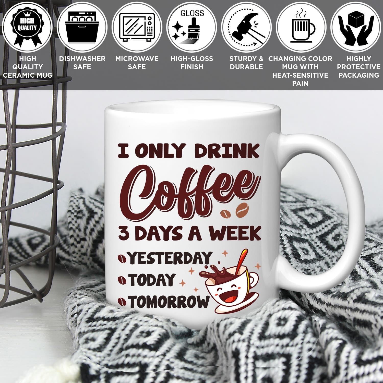 Are you spending too much time to find creative merchandise for you or suitable & special gifts for your mommy, your daddy, your son, your daughter, your children, your friends or someone you love? The struggle is over because we have various I Only Drink Coffee 3 Days a Week Mug, Coffee Mug, Funny Coffee Mug, I Only Drink Coffee Mug which will make perfect presents for your beloveds. In order to make your present stand out, we have created lots of unique and awesome customized photo gifts & personalized designs.