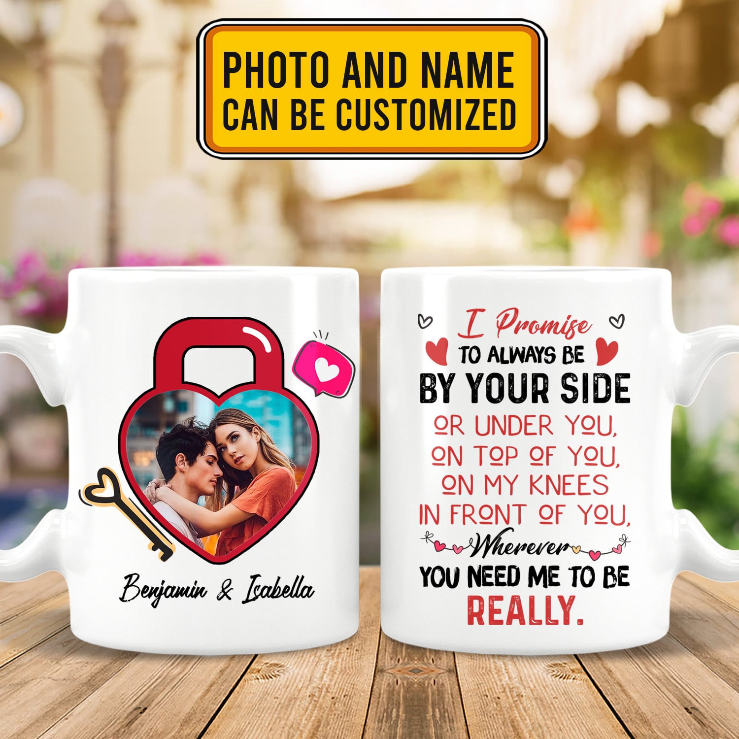 Let’s Shop Personalized Photo I Promise To Always Be By Your Side Or Under You Or On Top Of You 2 Sides Ceramic Coffee Mug!