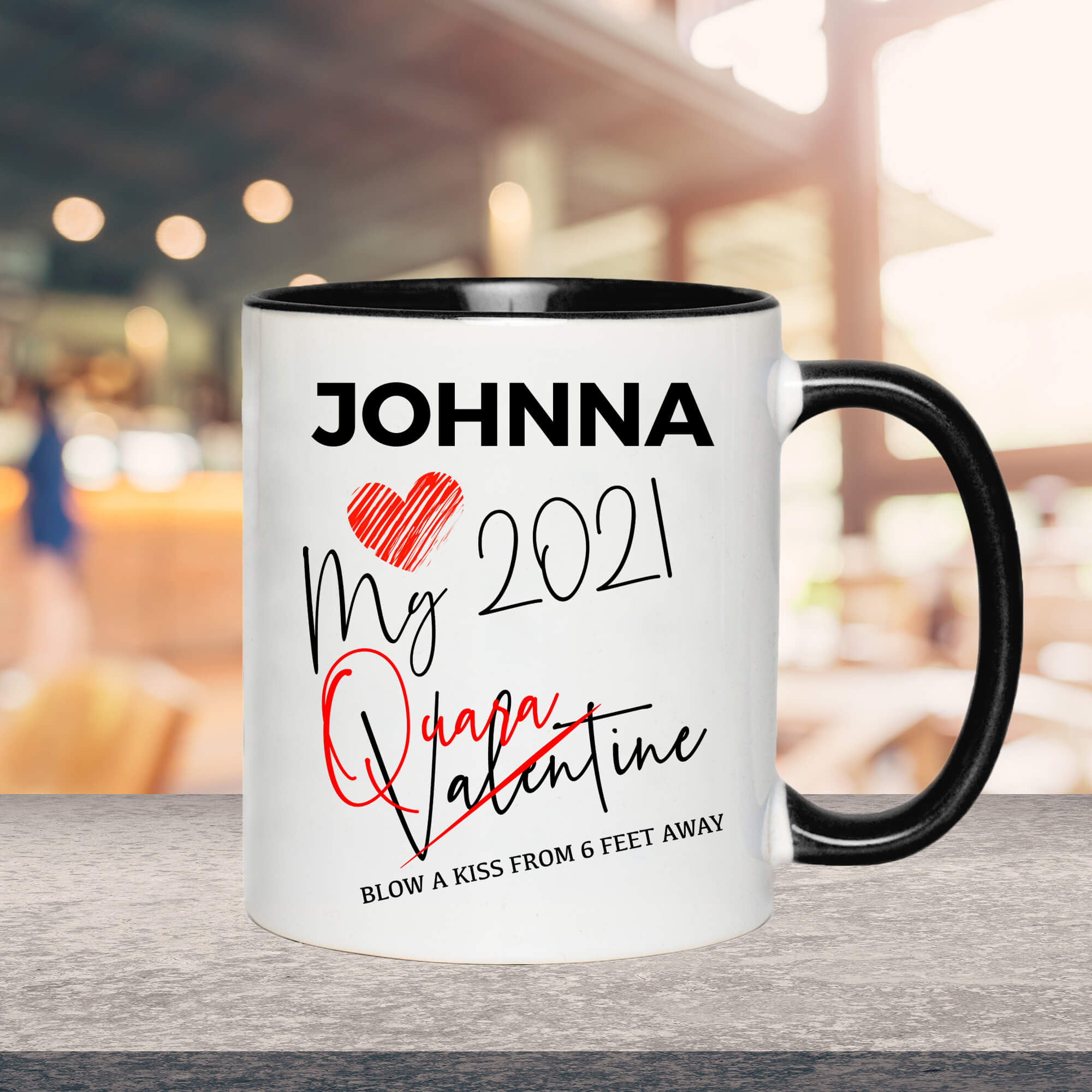 Let’s Shop Personalized Quarantined Love Accent Mug – Blow A Kiss From 6 Feet Away Mug – Valentine’s Day 2021 Mug!