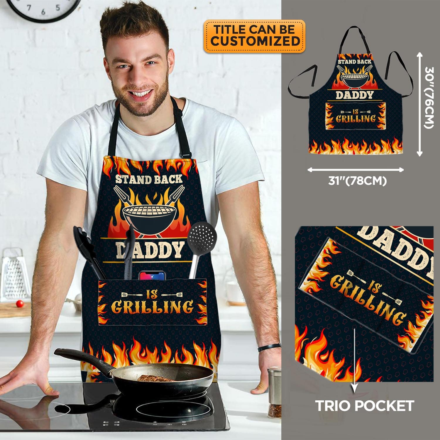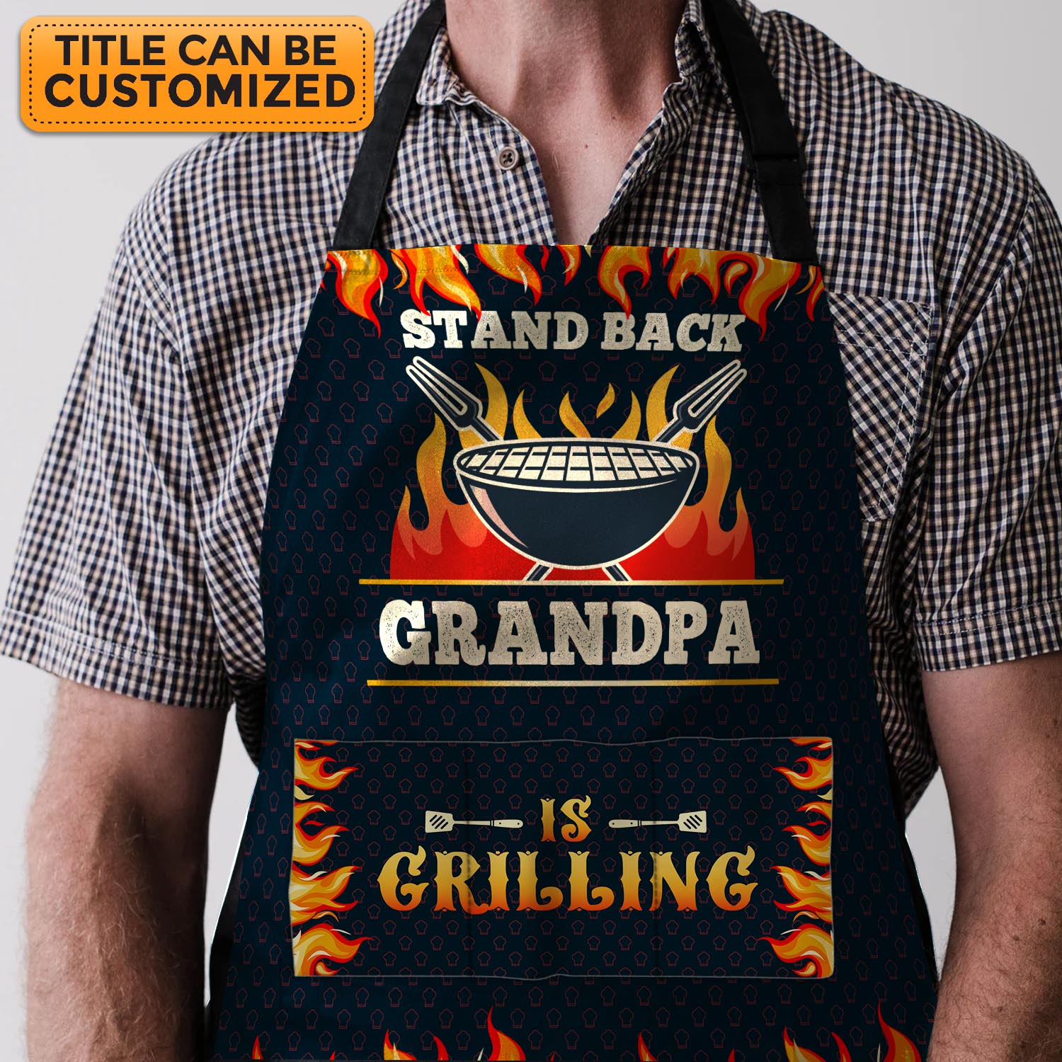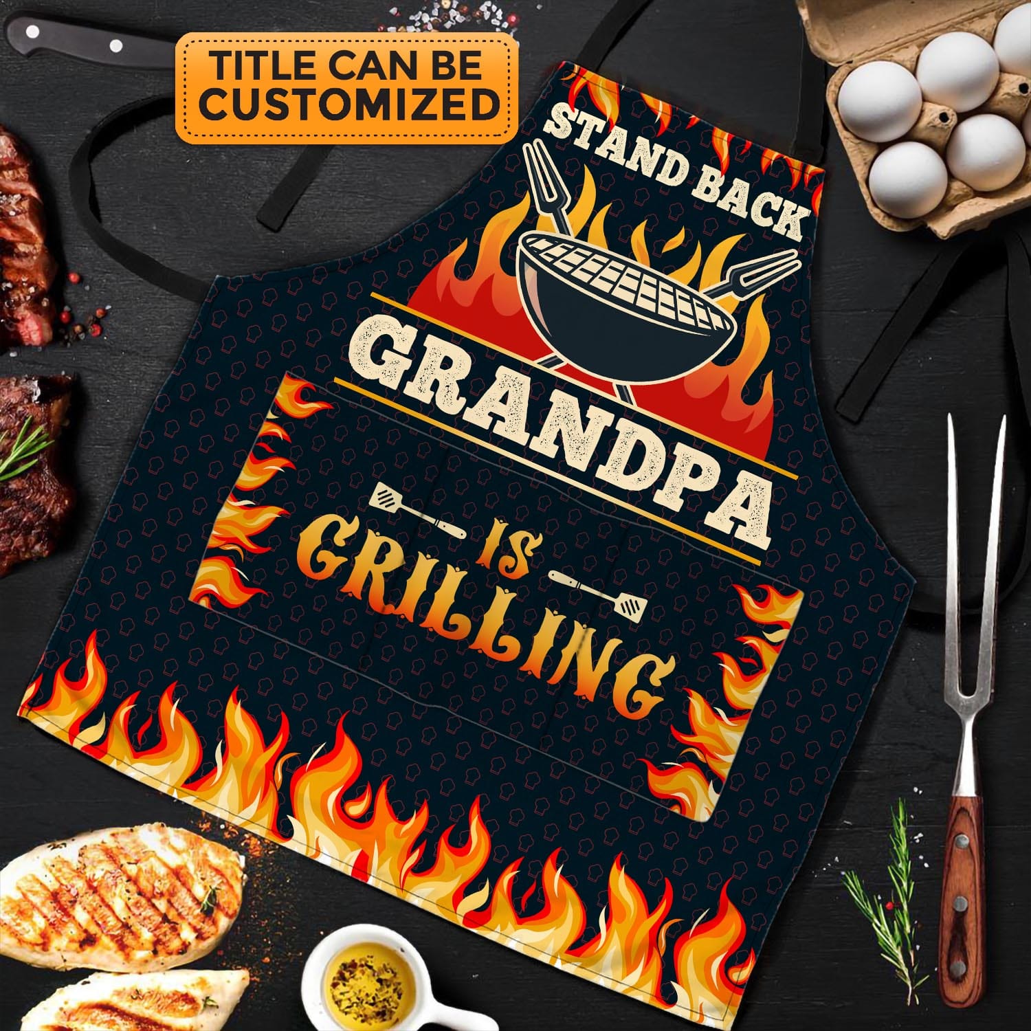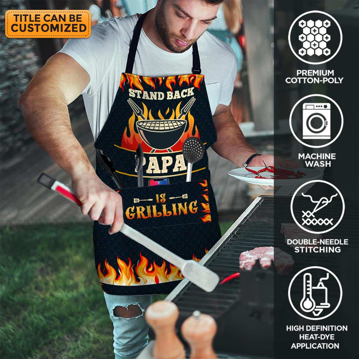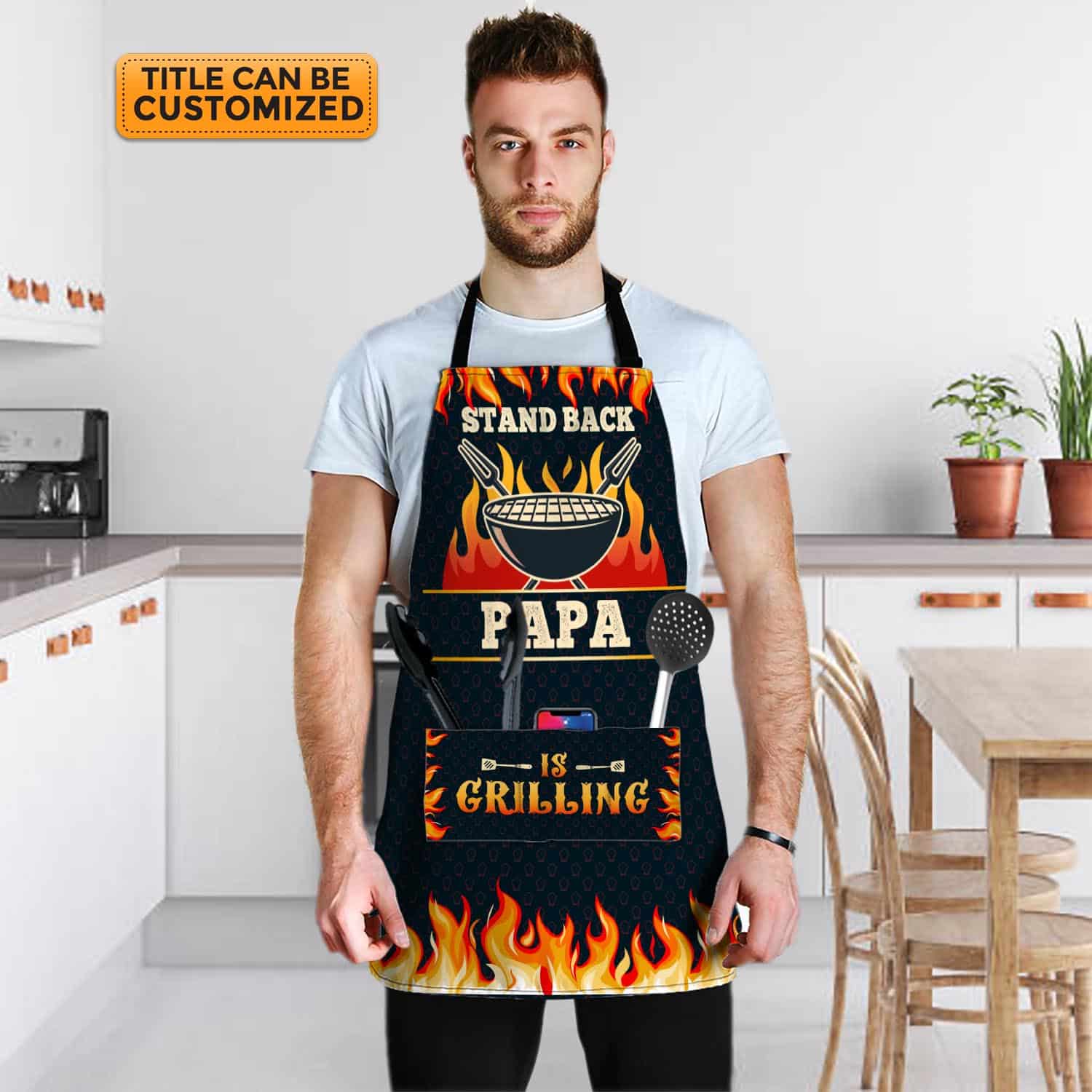 Let’s Shop Personalized Stand Back Papa Is Grilling Funny Cooking Apron With 3 Pockets – Funny Grandpa Apron – Dad Grilling Gifts!