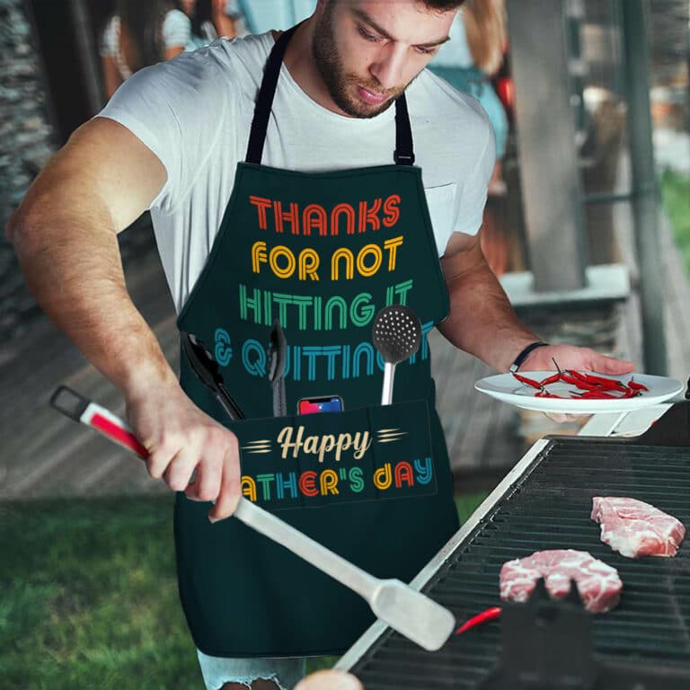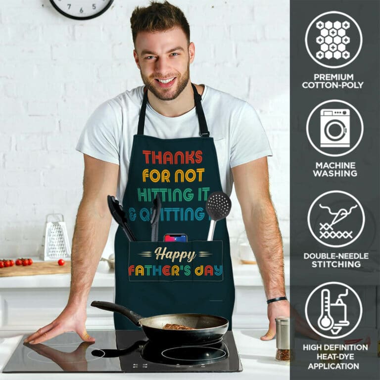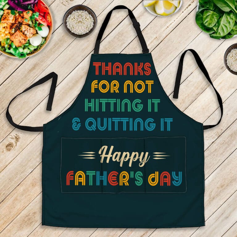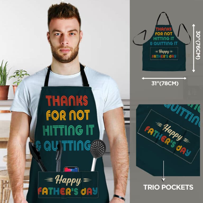 Let’s Shop Thanks For Not Hitting It And Quitting It Happy Father’s Day Funny Cooking Apron With 3 Pockets!