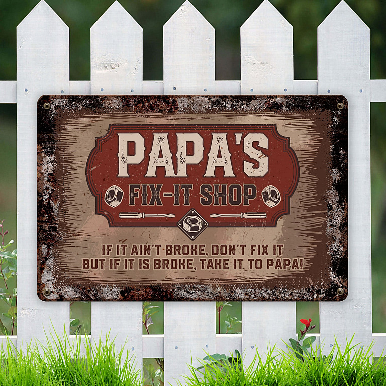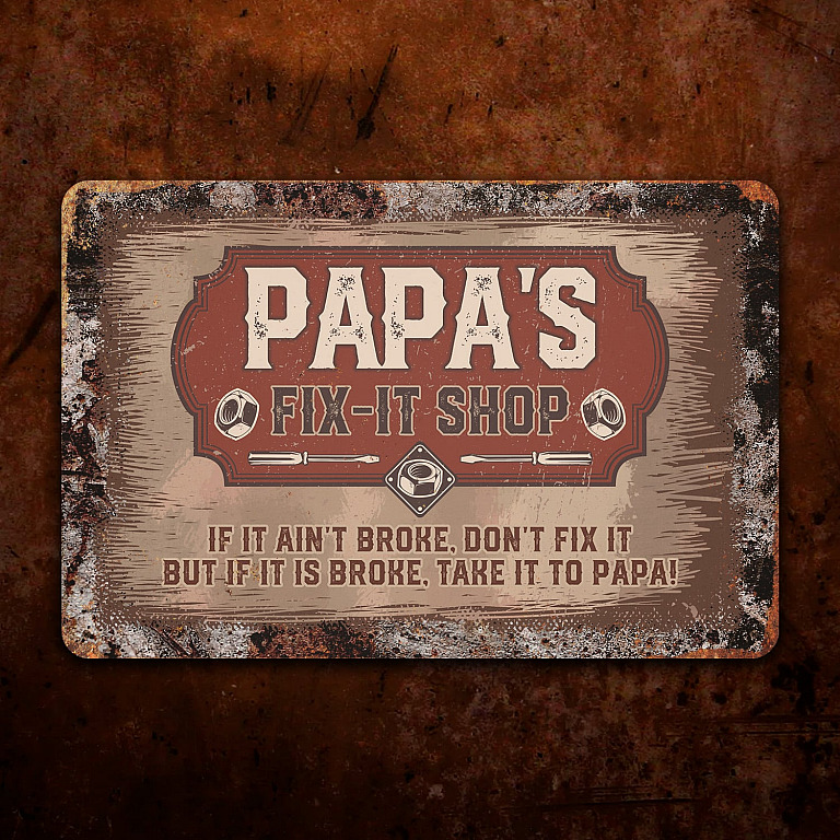 Let’s Shop Papa’s Fix It Shop If It Ain’t Broke Don’t Fix It Decorative Metal Sign – Indoor Outdoor Decor!