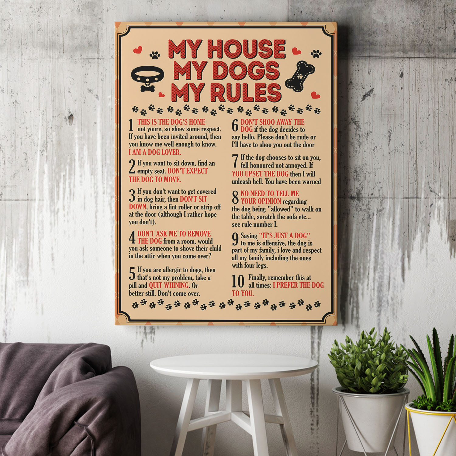 Shop My House My Dogs My Rules This Is The Dog’s Home Gallery Wrapped Framed Canvas Prints – Unframed Poster.