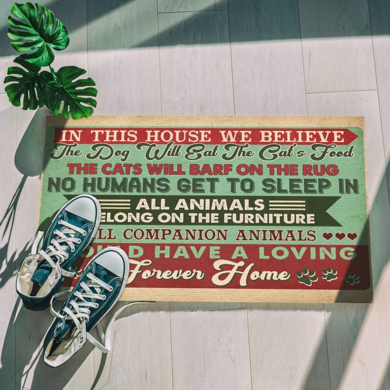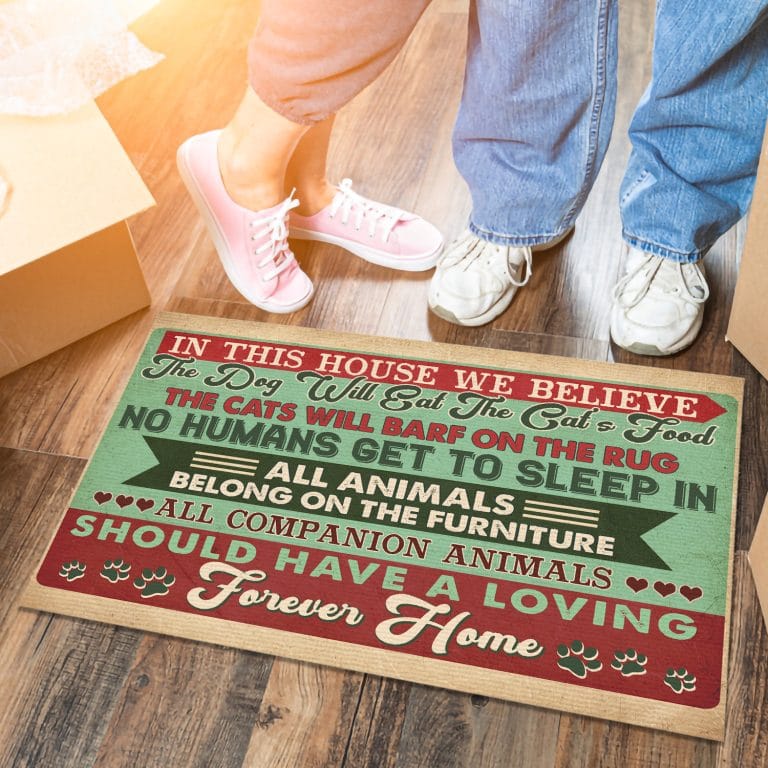 Let’s Shop In This House We Believe All Companion Animals Should Have a Loving Forever Home Entrance Funny Decorative Doormat!