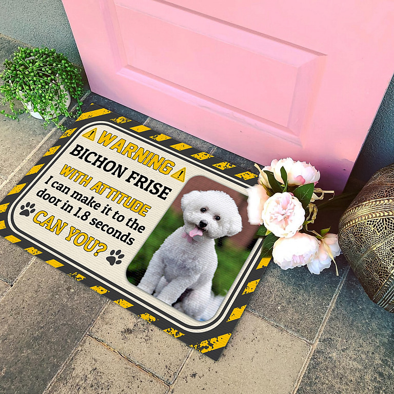 Let’s Shop Personalized Warning Dog Name With Attitude I Can Make It To The Door In 1.8 Seconds Outdoor House Doormat!