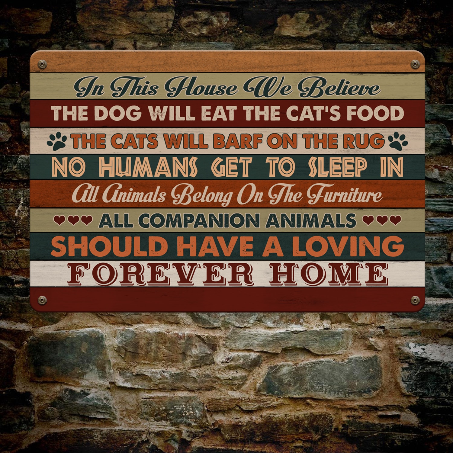 Let’s Shop In This House We Believe All Companion Animals Should Have a Loving Forever Home Decorative Indoor Outdoor Metal Sign!