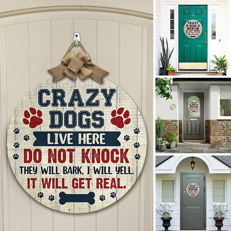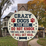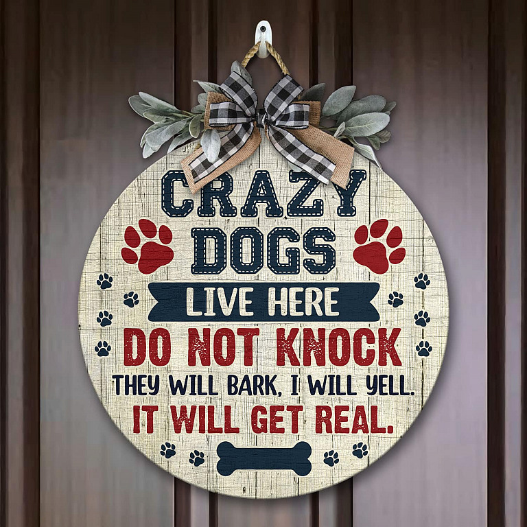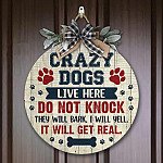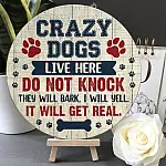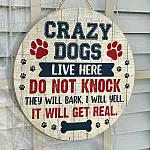 Let’s Shop Crazy Dogs Live Here Do Not Knock Decorative Circle Wooden Door Sign – Front Porch Sign Indoor Outdoor Decor Farmhouse!