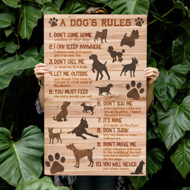 Let’s Shop Funny Dog’s Rules Gallery Wrapped Canvas Print – Home Decor Wall Art – Poster – Gifts for Dog Lovers!