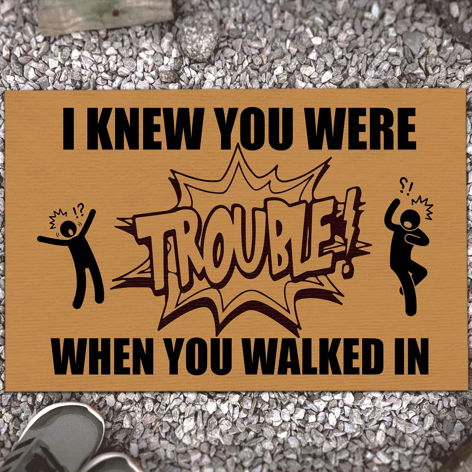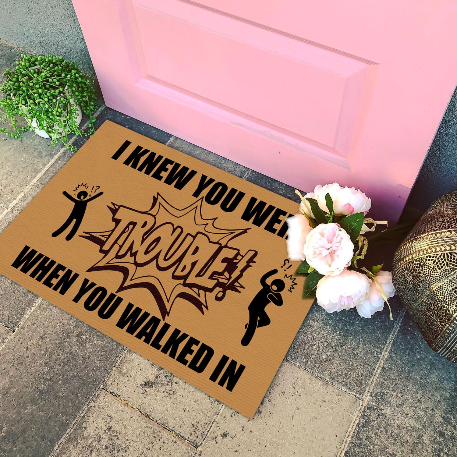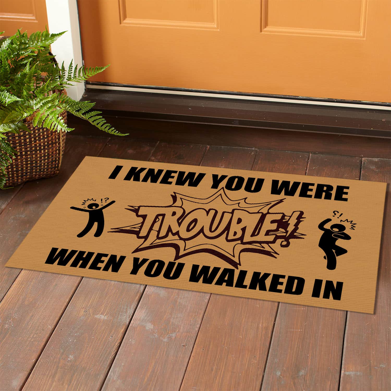 Let’s Shop I Knew You Were Trouble When You Walked In Funny Indoor Outdoor Decorative Doormat!