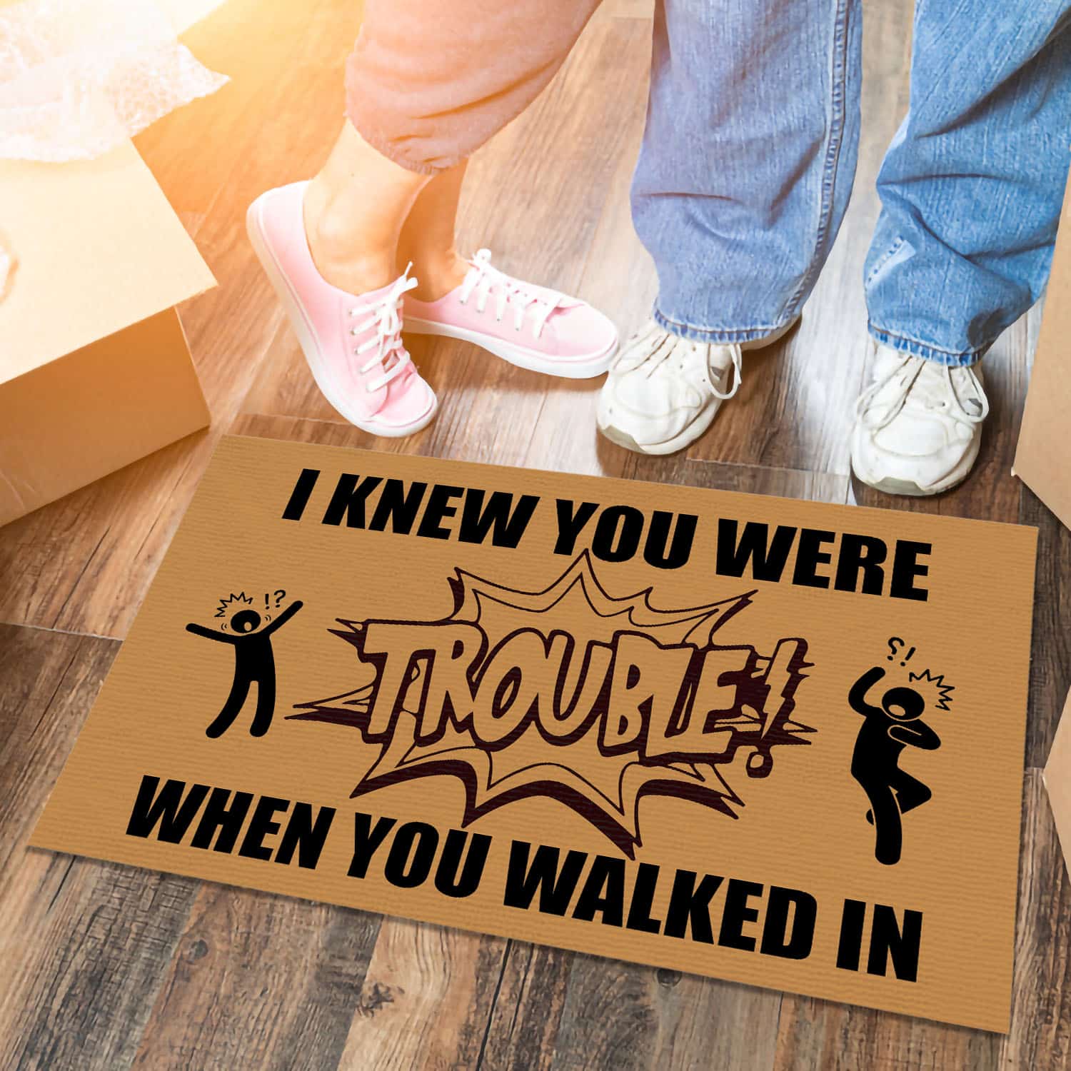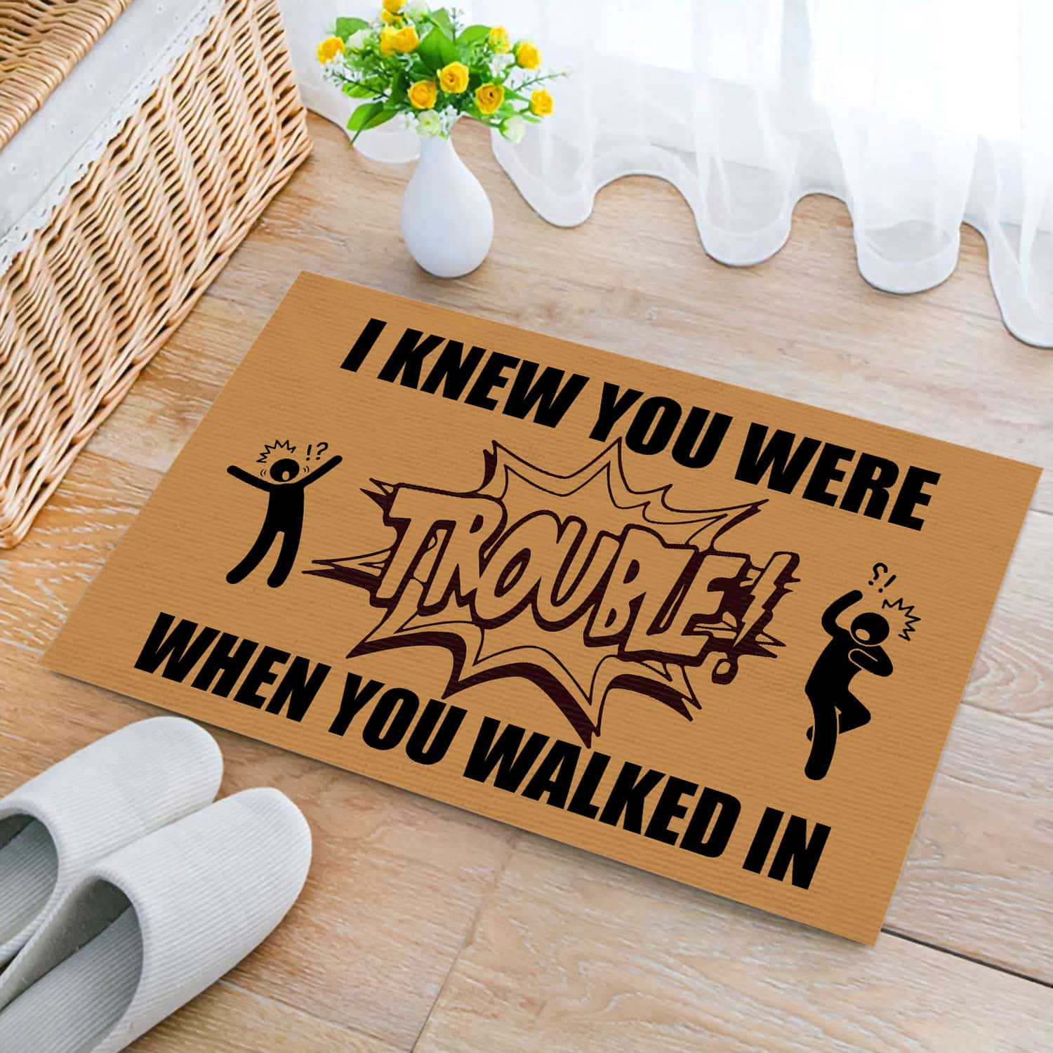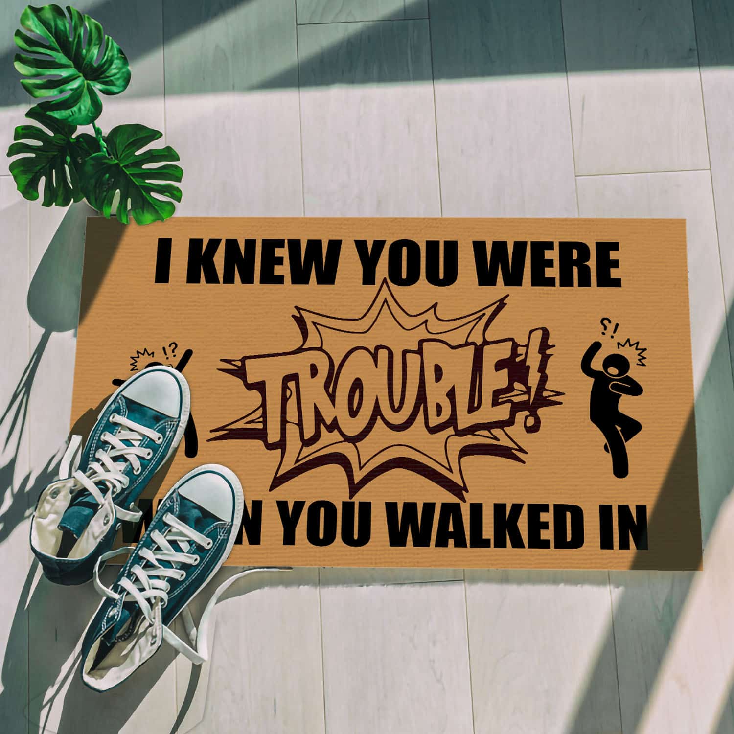 Let’s Shop I Knew You Were Trouble When You Walked In Funny Indoor Outdoor Decorative Doormat!