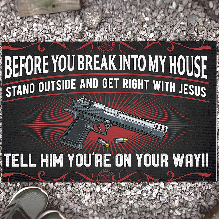 Let’s Shop Before You Break Into My House Stand Outside And Get Right With Jesus Funny Gun House Doormat – Outdoor Doormat!