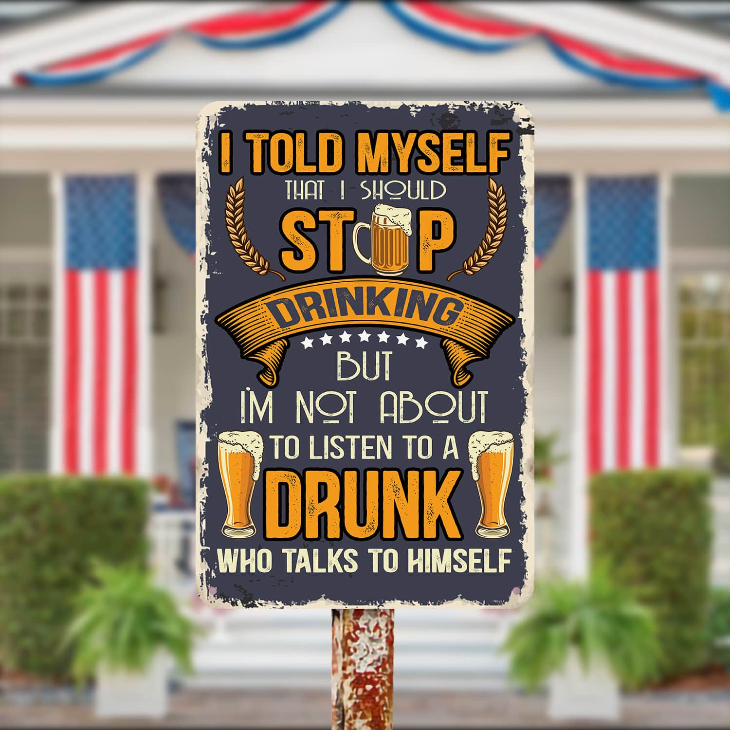 Let’s Shop I Told Myself I Should Stop Drinking Decorative Metal Sign – Funny Drinking Sign!
