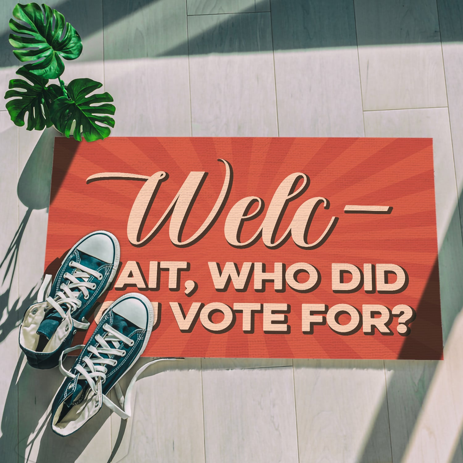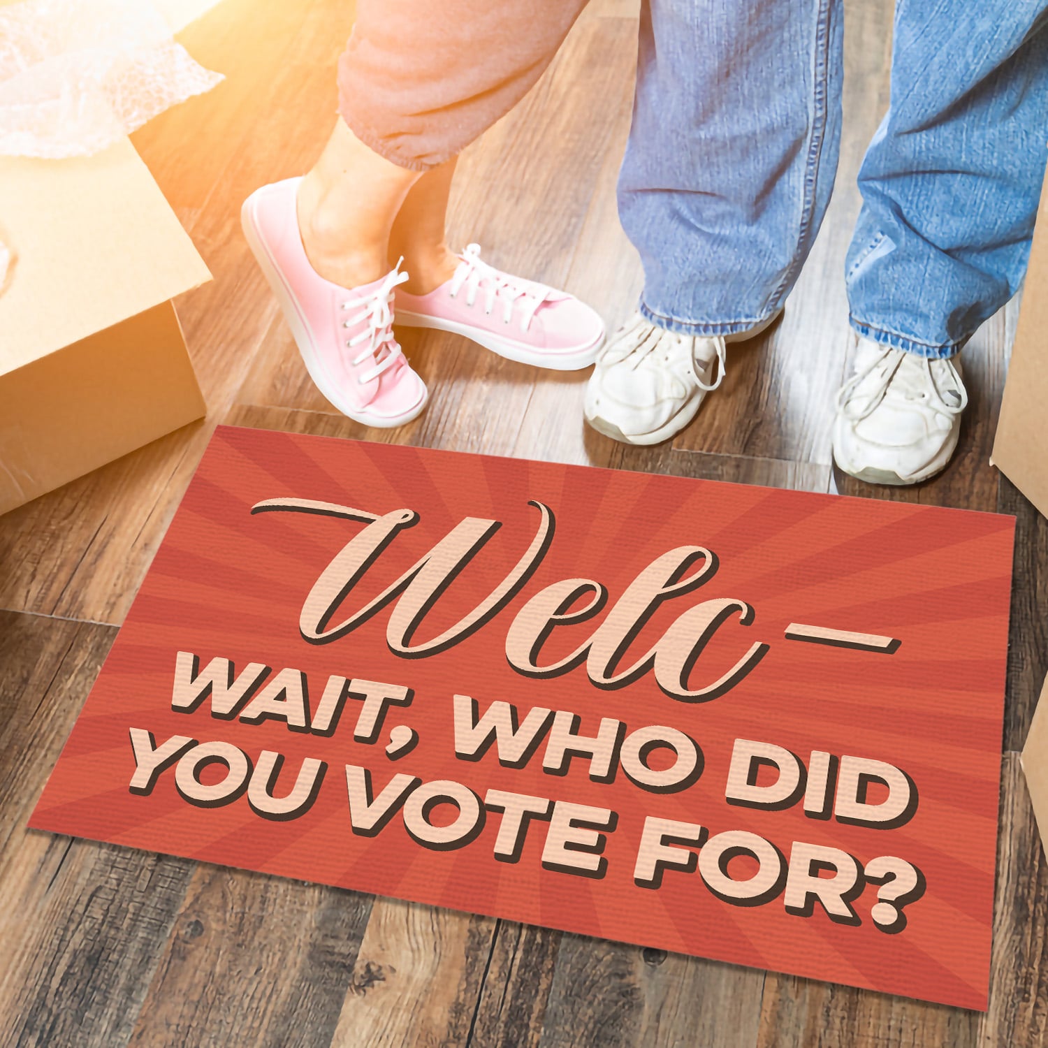 Let’s Shop Welc Wait Who Did You Vote for Election Doormat Funny Welcome Rug Indoor Outdoor Decorative Doormat!