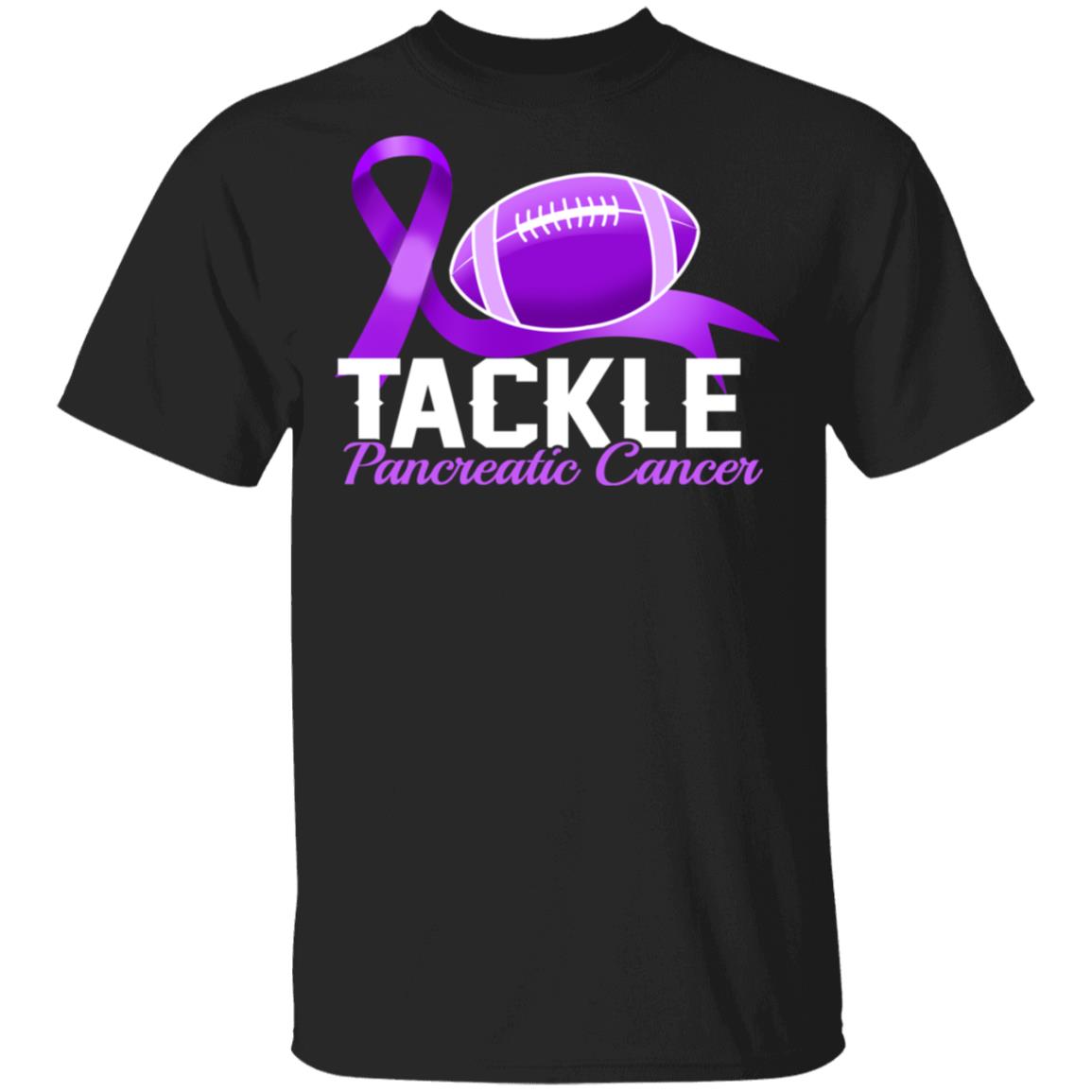Funny Football Tackle Pancreatic Cancer Purple Ribbon T-Shirt
