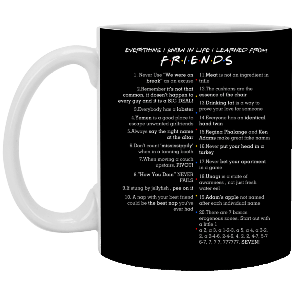 Shop Everything I Know In Life I I Learned From Friends – Funny Friends Fan Mug.