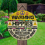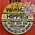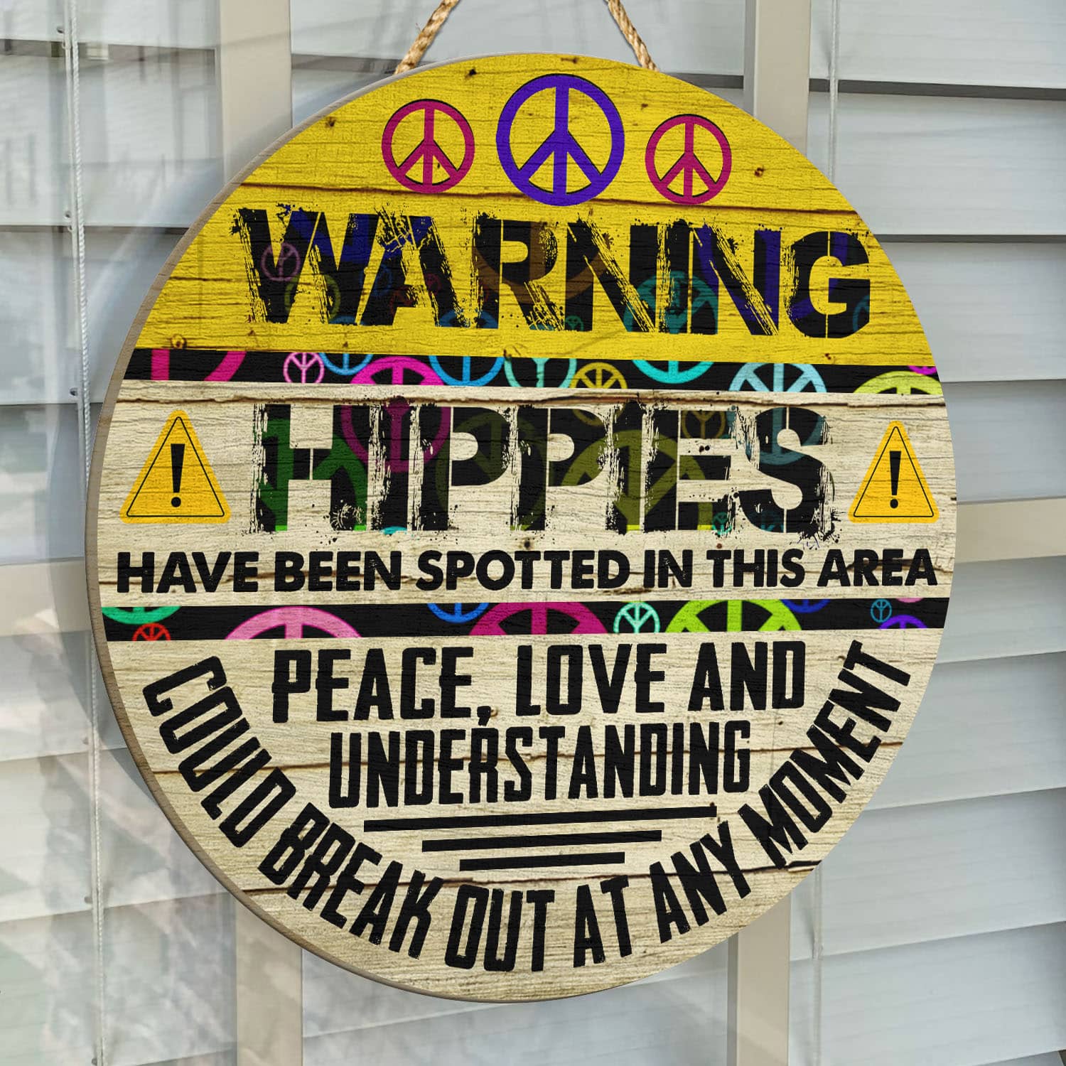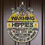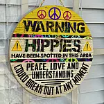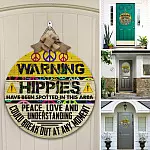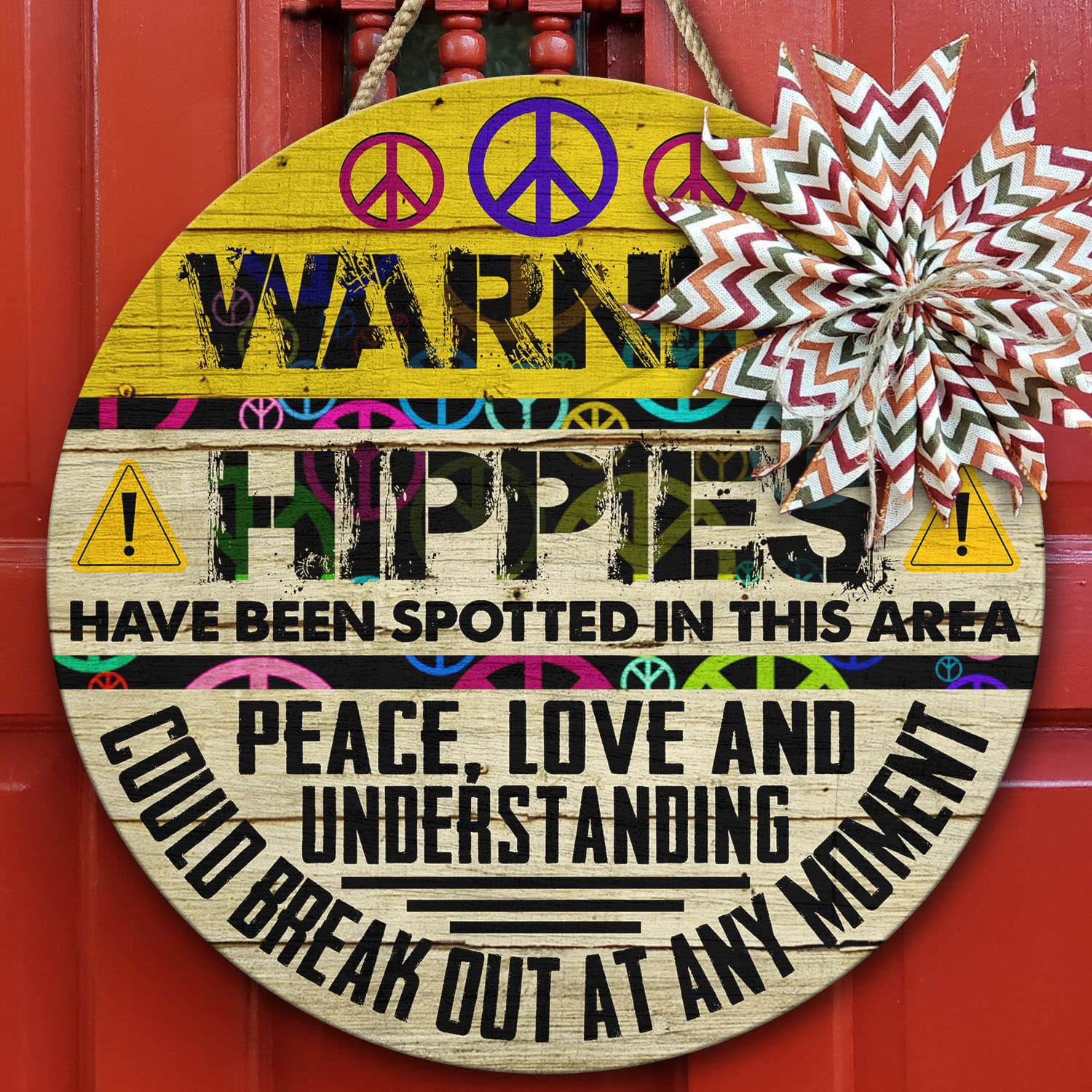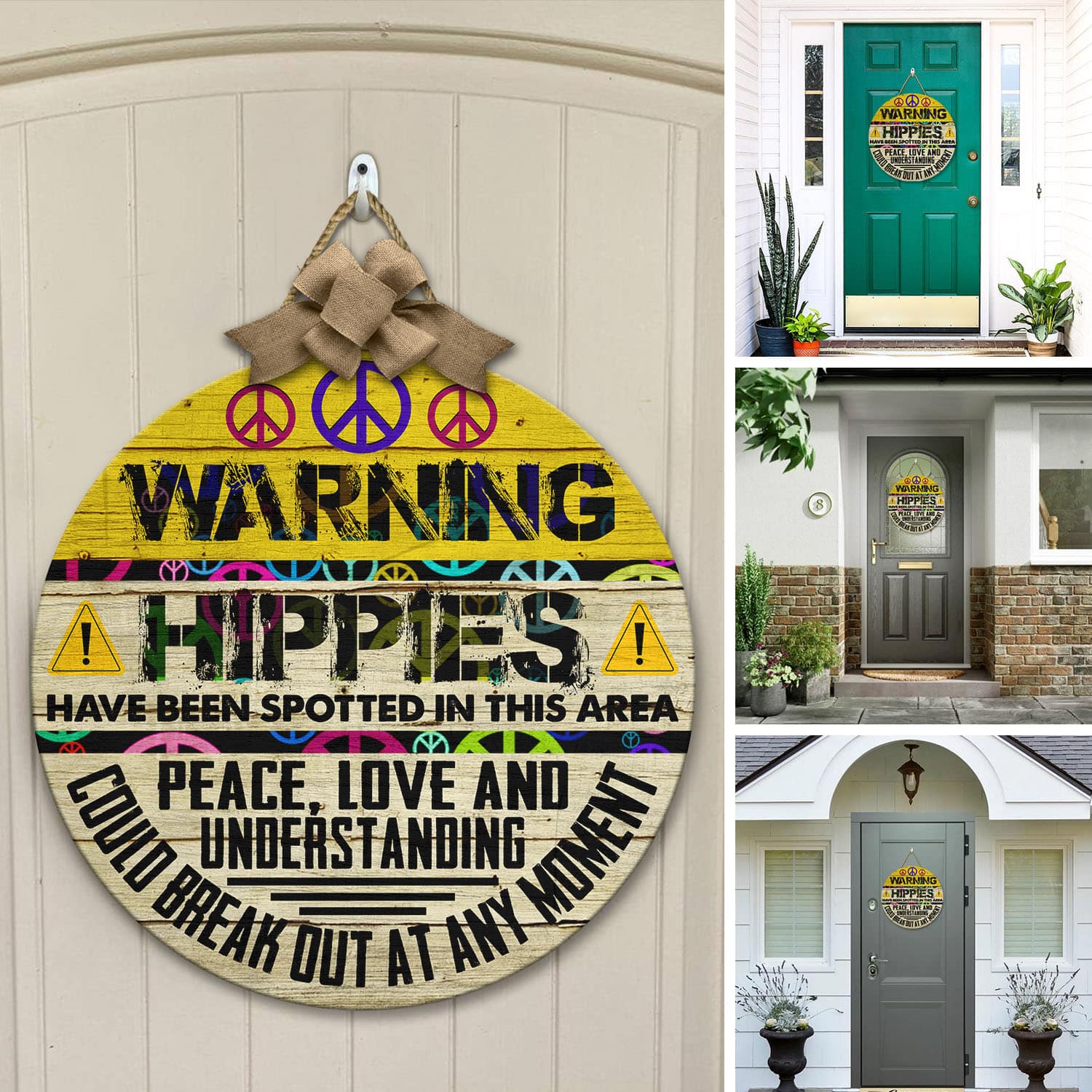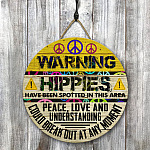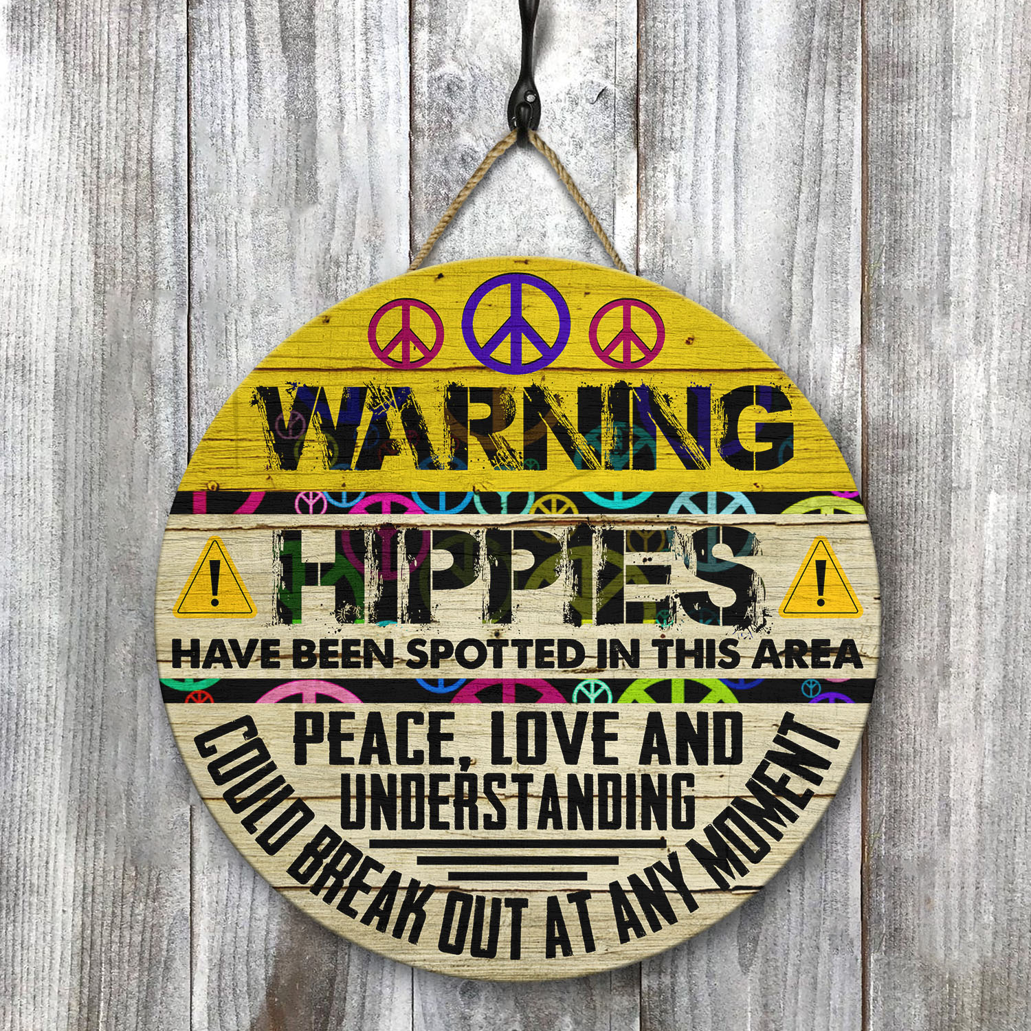 Let’s Shop Warning Hippies Have Been Spotted In This Area Peace Love And Understanding Funny Decorative Wooden Front Porch Door Sign!