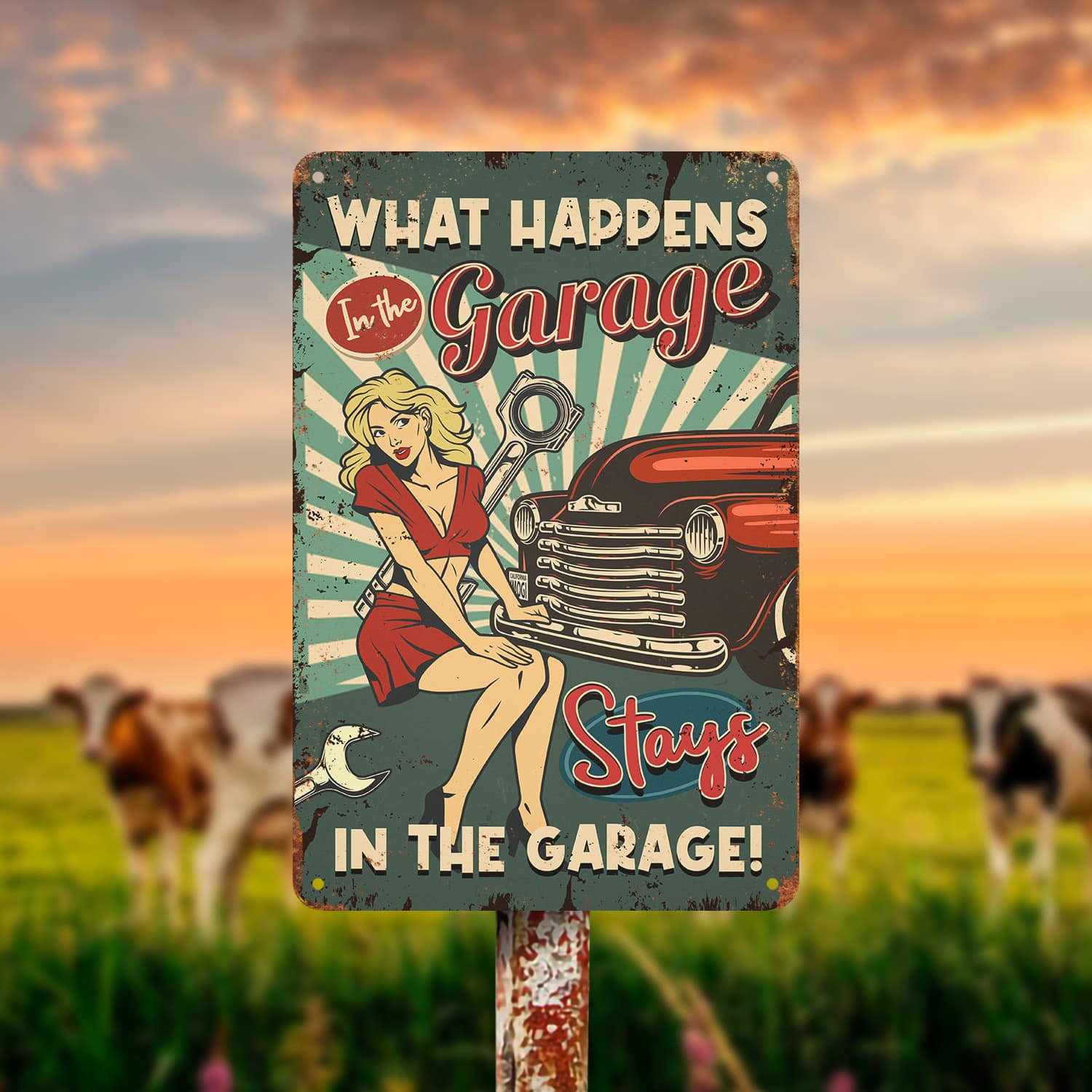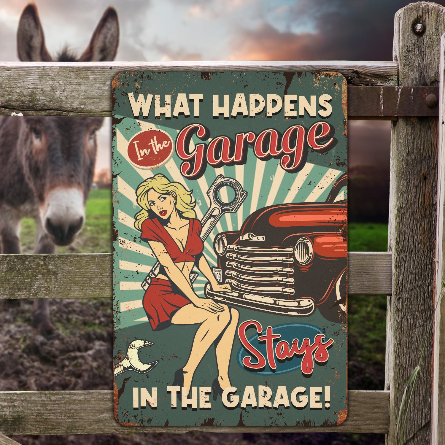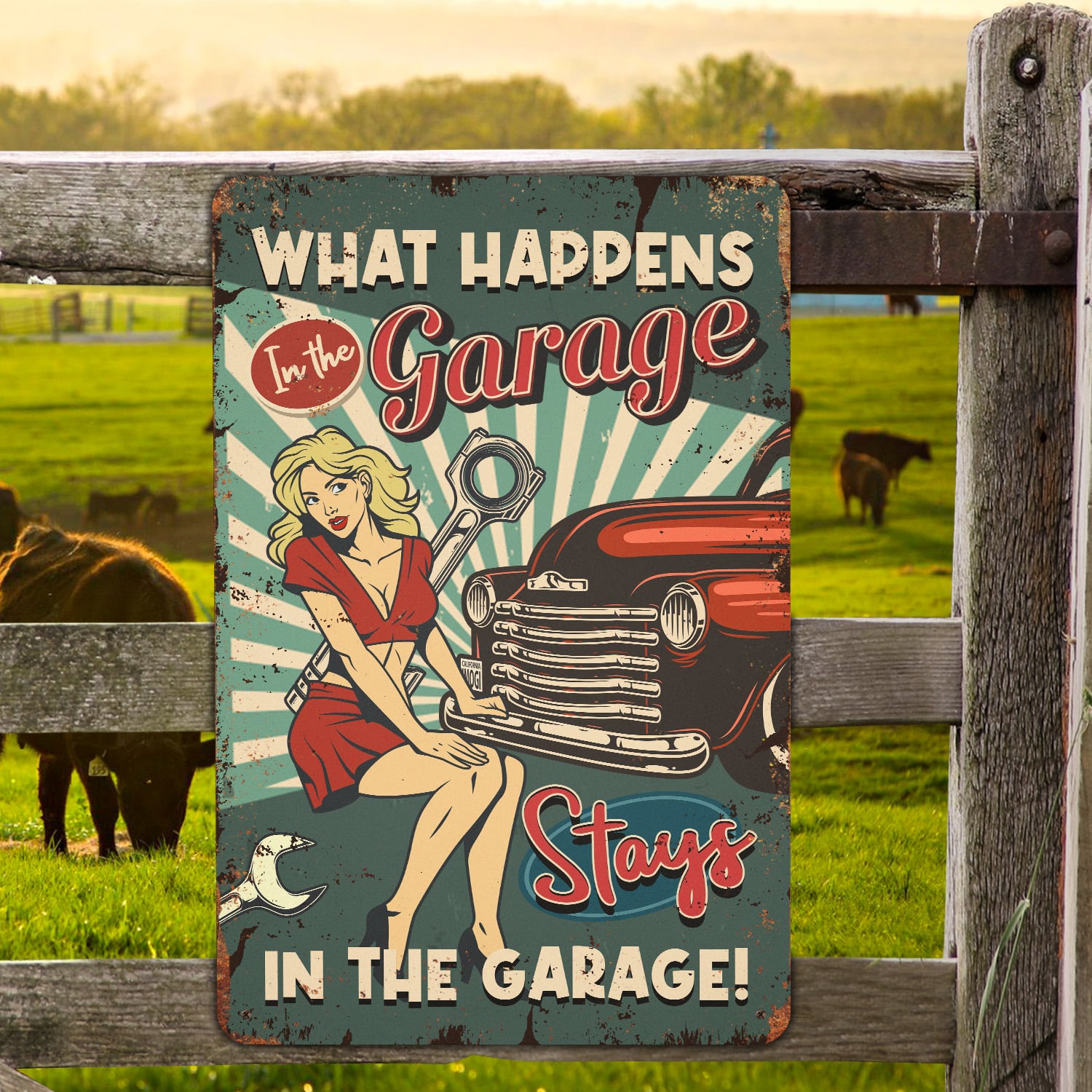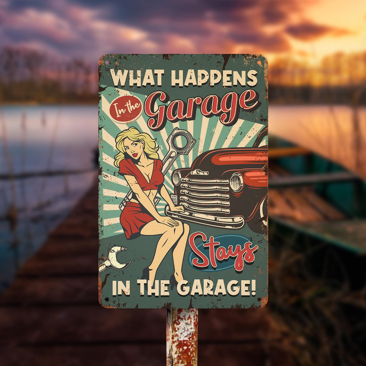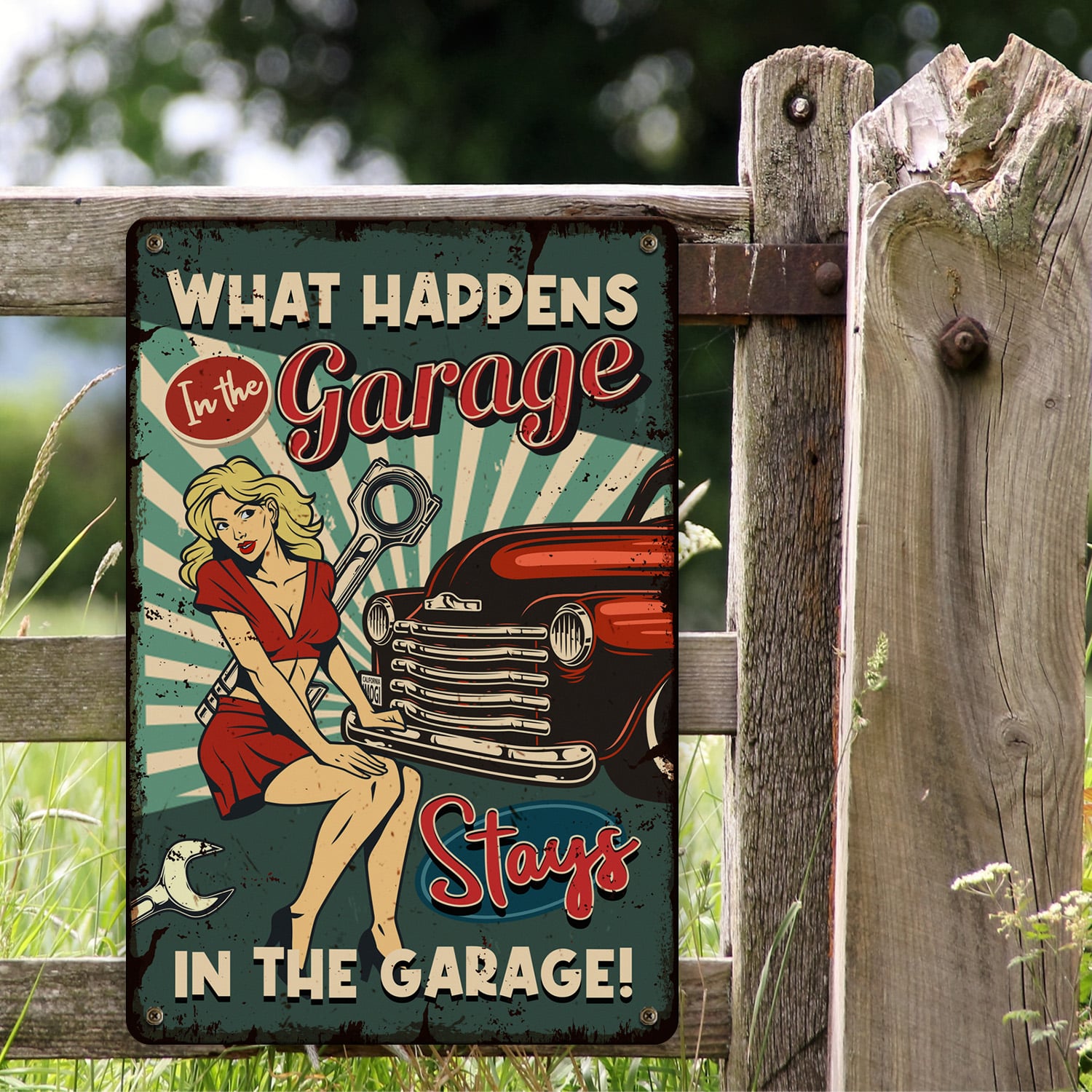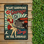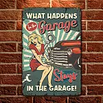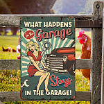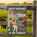 Let’s Shop What Happens in the Garage Stays in the Garage Decorative Metal Sign – Metal Garage Signs!