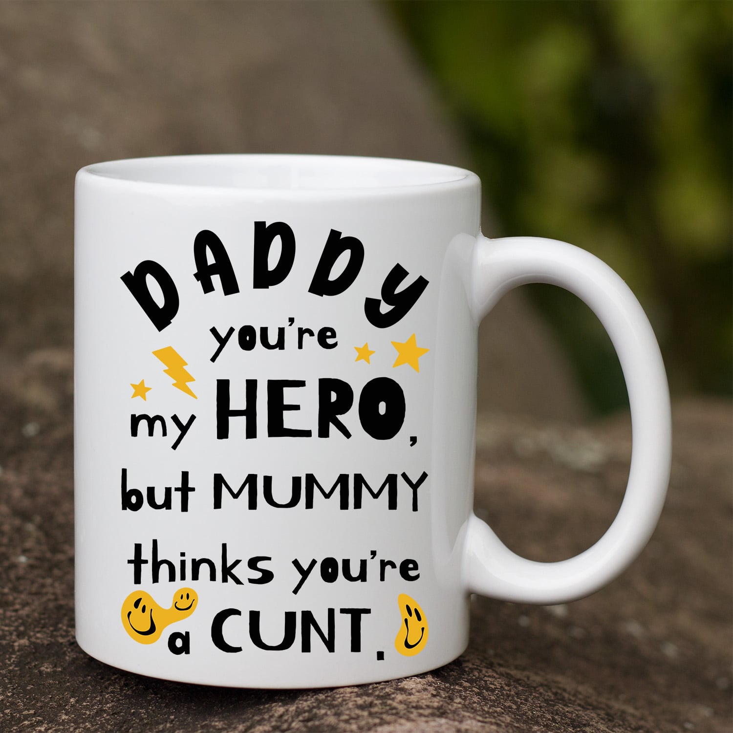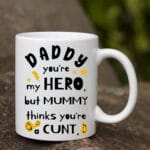 Let’s Shop Daddy You’re My Hero But Mummy Thinks You’re a Cunt Funny Fathers Day Gifts Accent Mug!