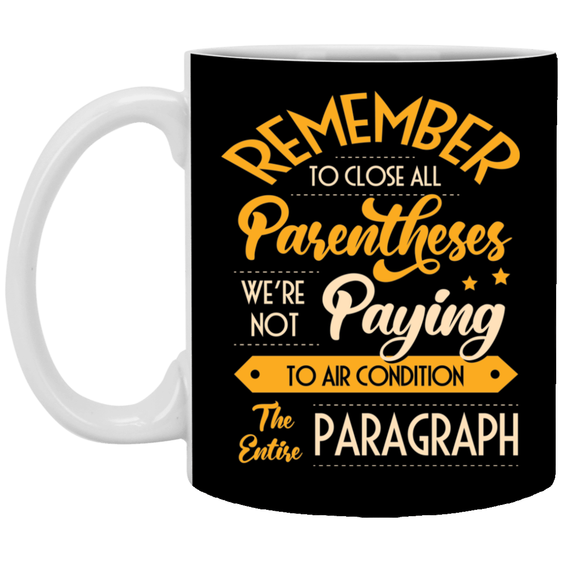 Remember To Close All Parentheses Ceramic Coffee Mug – Beer Stein – Water Bottle – Color Changing Mug