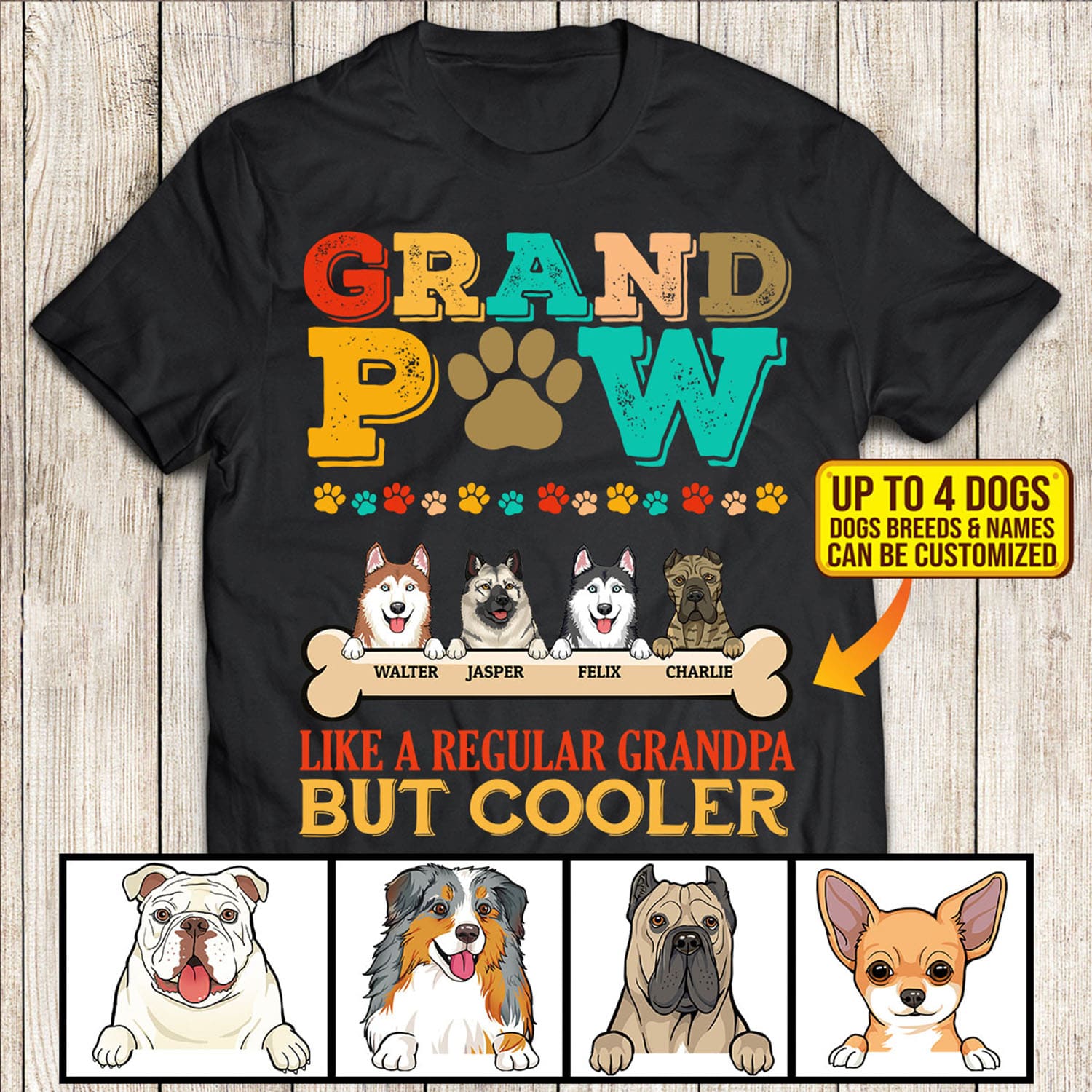 Are you spending too much time to find creative merchandise for you or suitable & special gifts for your mommy, your daddy, your son, your daughter, your children, your friends or someone you love? The struggle is over because we have various Grandpaw Like a Regular Grandpa but Cooler, Dog Grandpa Shirt, Grandpa Dog Shirt, I Love My Grandpa Dog Shirt, Grandpaws, Grandpaw Tshirt, Dirty Grandpaw, Gift from Dog to Grandpaw, Father’s Day Custom Gift which will make perfect presents for your beloveds. In order to make your present stand out, we have created lots of unique and awesome customized photo gifts & personalized designs.