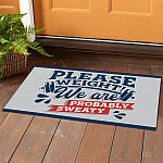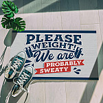 Let’s Shop Please Weight We Are Probably Sweat Indoor Outdoor Decorative Doormat – Funny Gym Doormat!