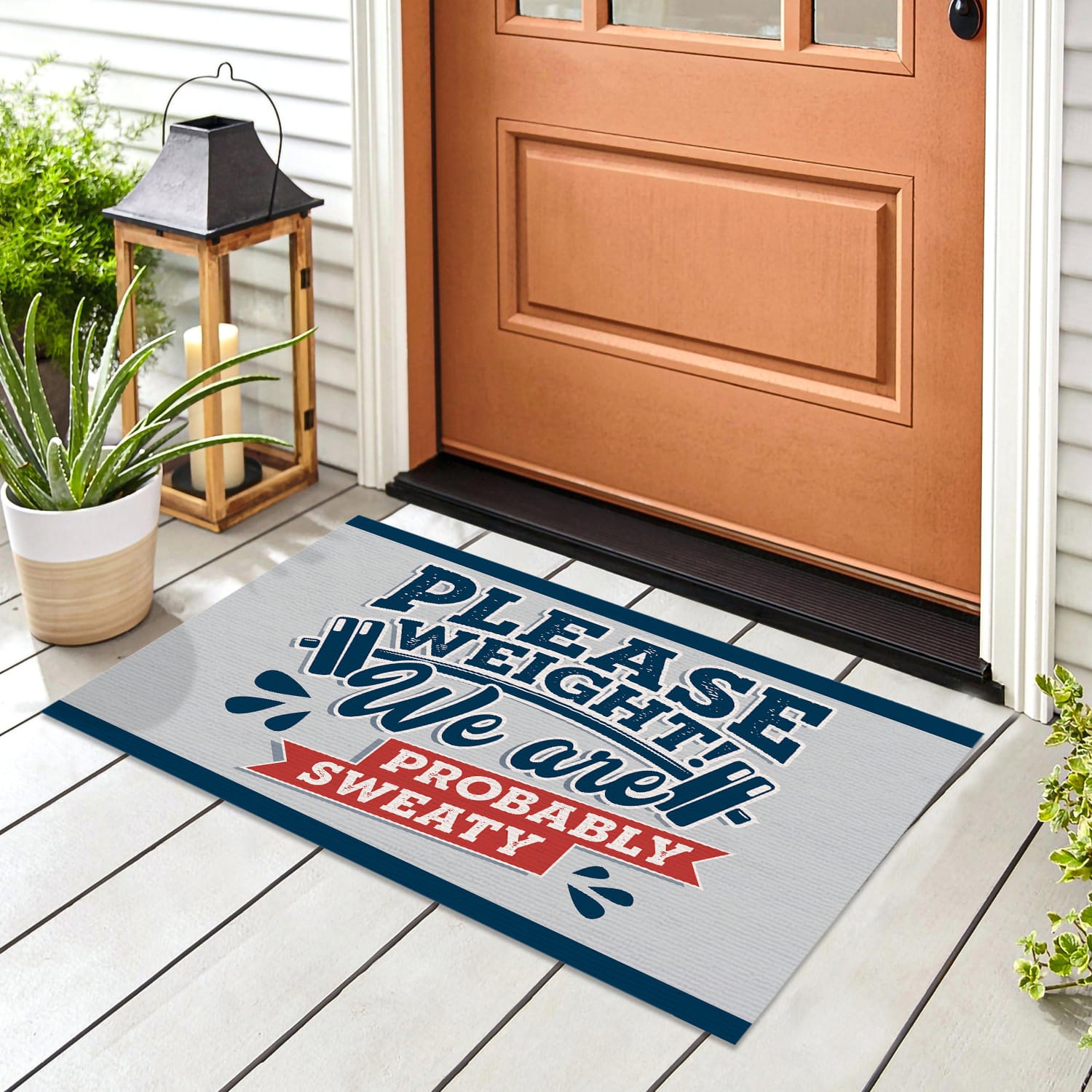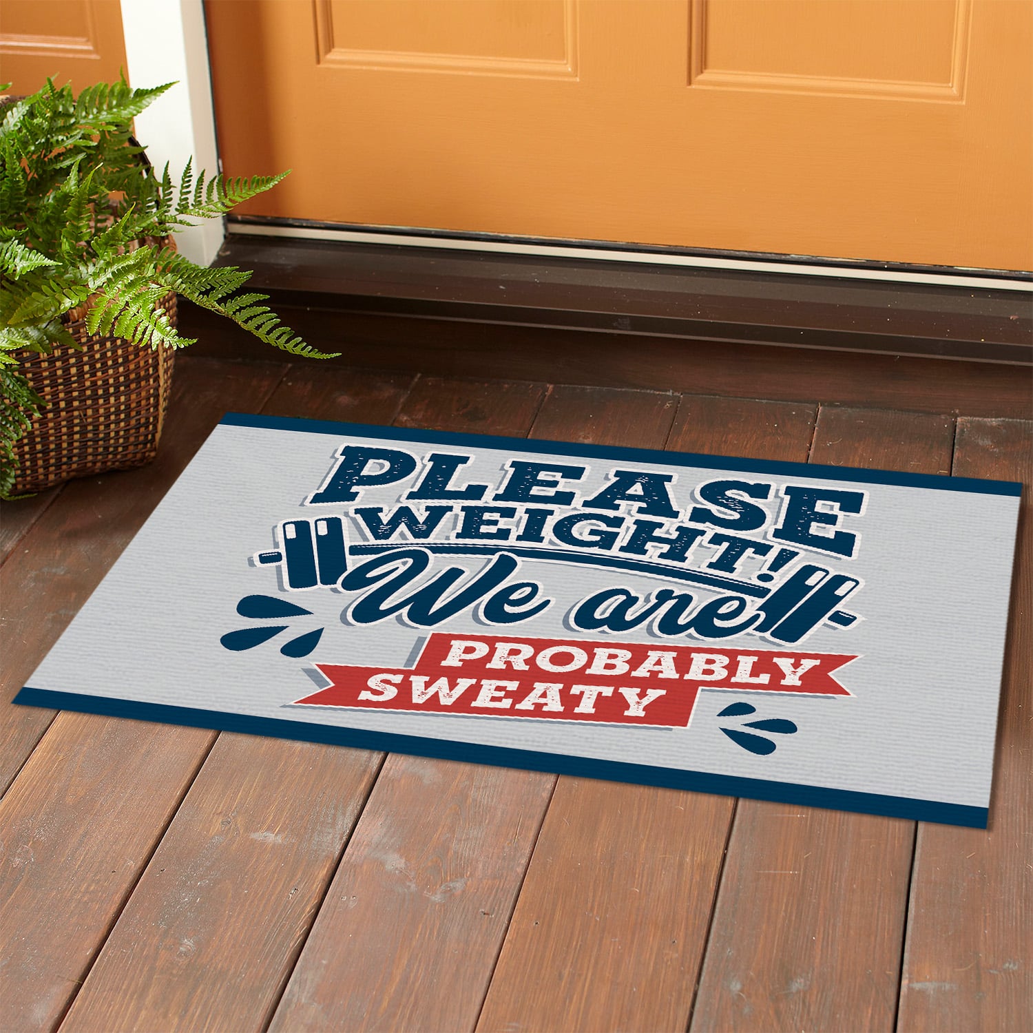 Are you spending too much time to find creative merchandise for you or suitable & special gifts for your mommy, your daddy, your son, your daughter, your children, your friends or someone you love? The struggle is over because we have various Please Weight We Are Probably Sweat Indoor Outdoor Decorative Doormat, Funny Gym Doormat, Funny Lift Weight Doormat, Funny Please Weight Doormat, Funny Gym Doormat, Funny Gym House Doormat which will make perfect presents for your beloveds. In order to make your present stand out, we have created lots of unique and awesome customized photo gifts & personalized designs.