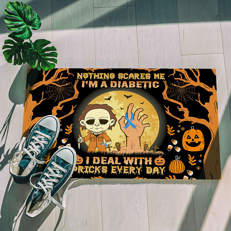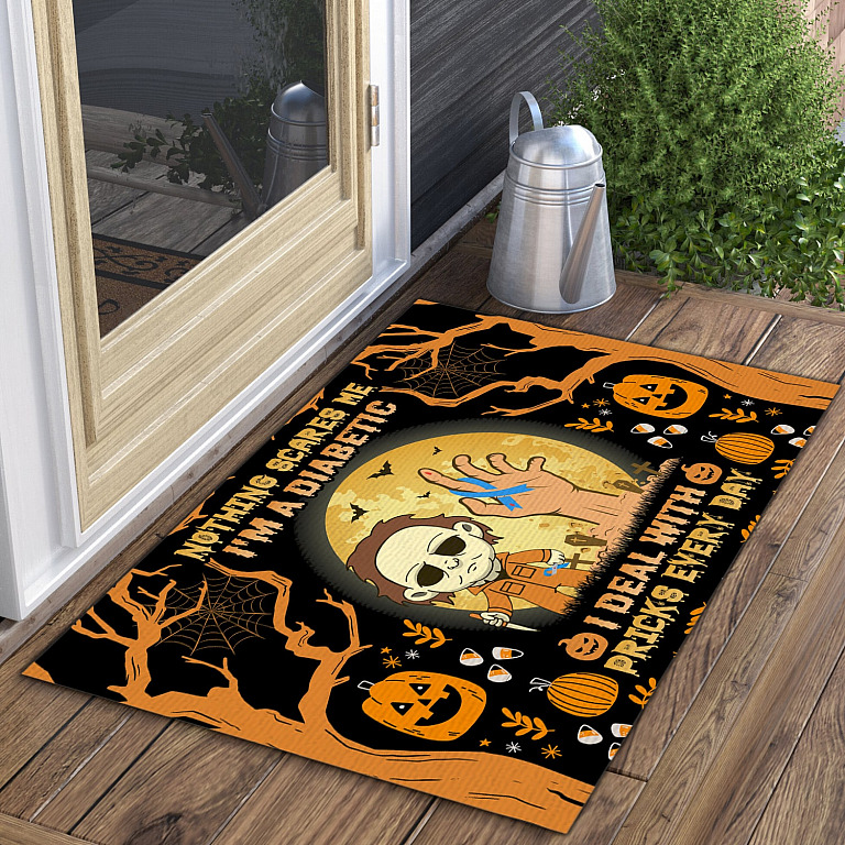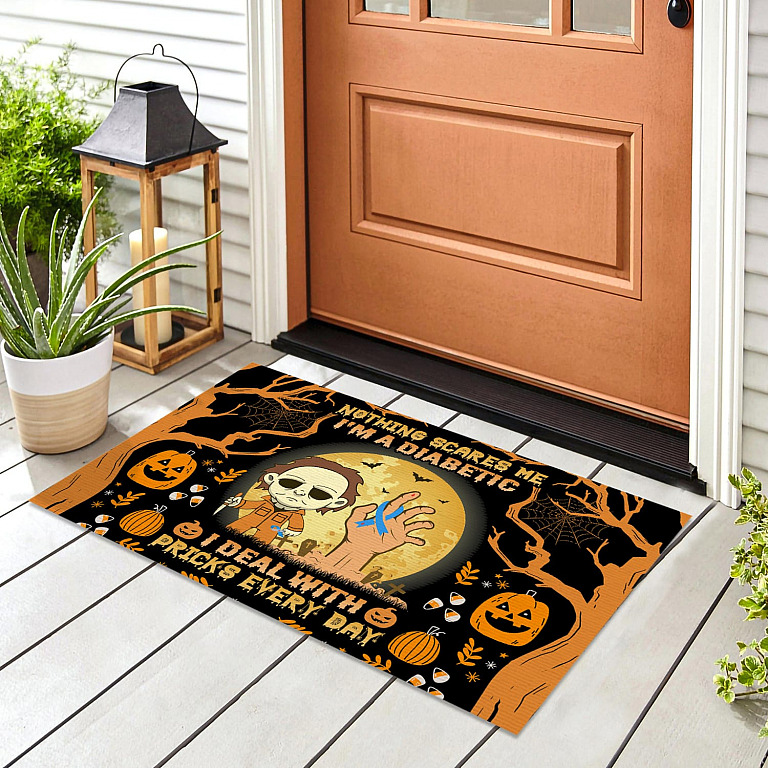 Let’s Shop Funny Diabetes Halloween Meme Saying Entrance Door Mat – Nothing Scares Me I’m Michael A Diabetic Myers I Deal With Pricks Everyday Doormat!