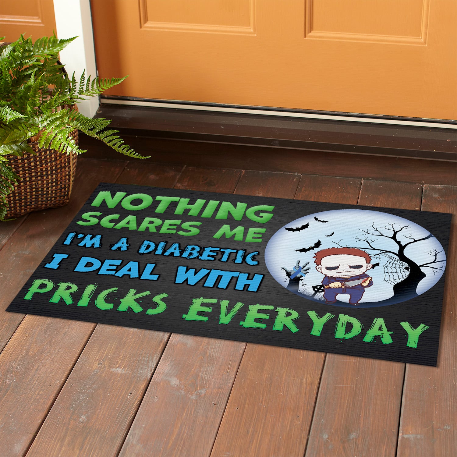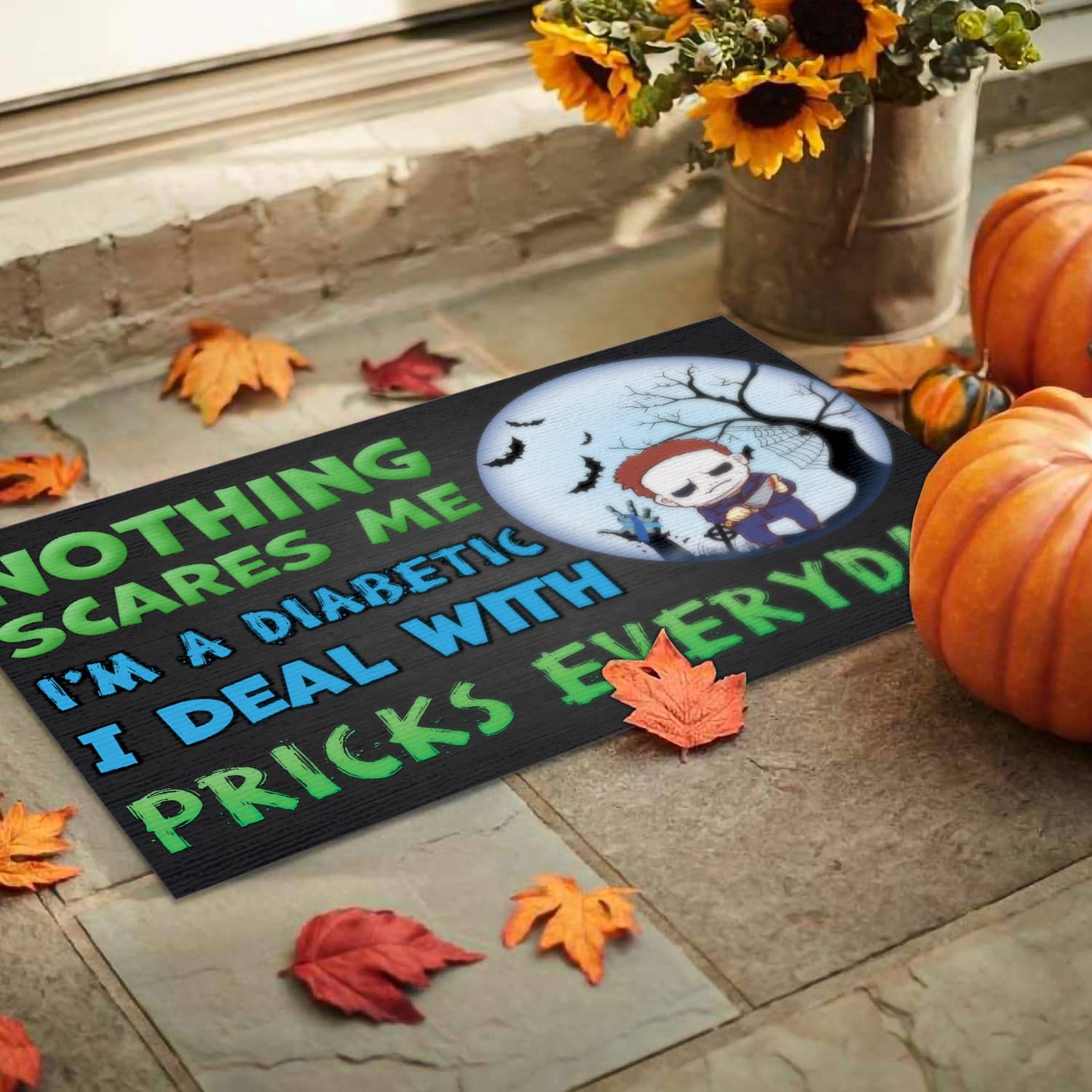 Let’s Shop Nothing Scares Me I’m Michael A Diabetic Myers I Deal With Pricks Everyday Doormat – Funny Diabetes Hallowen Custom Meme Saying Door Mat!
