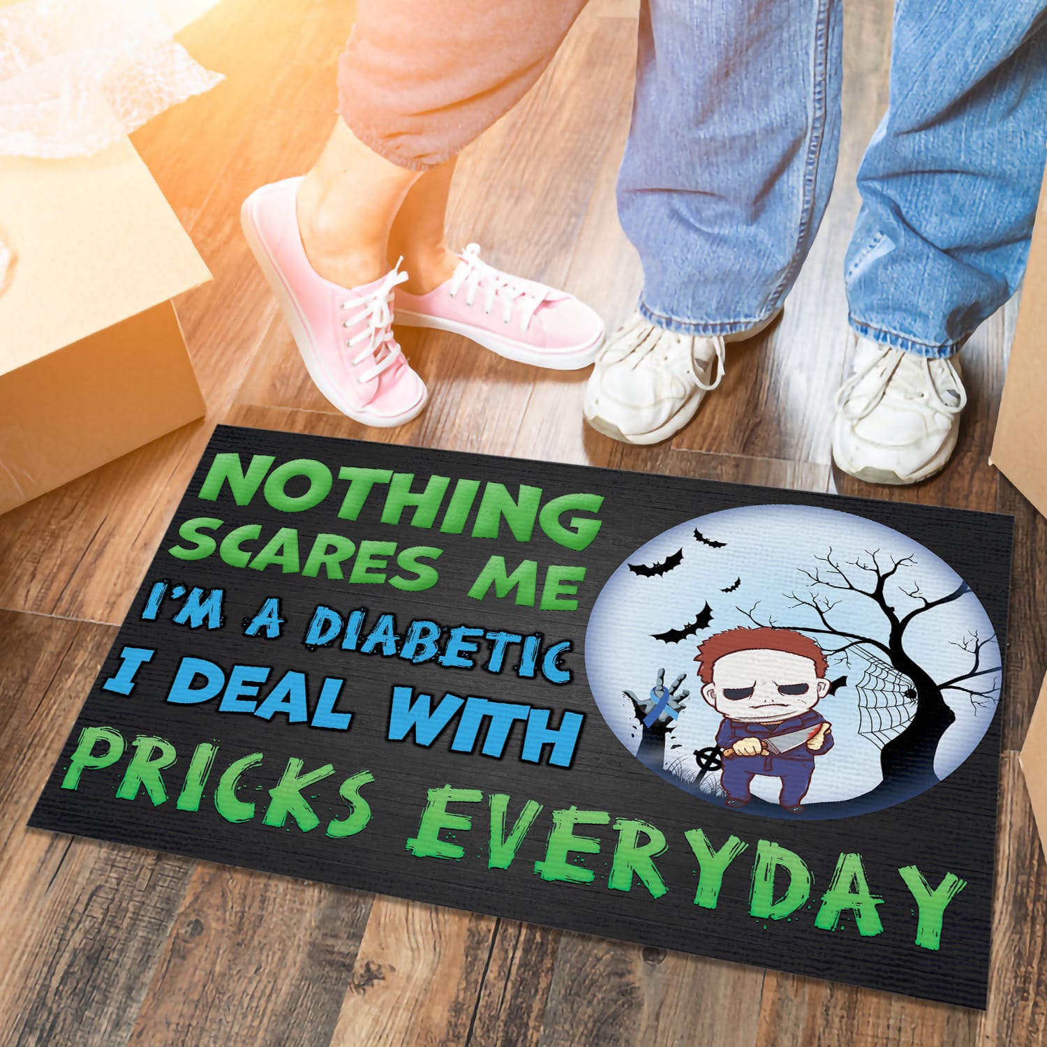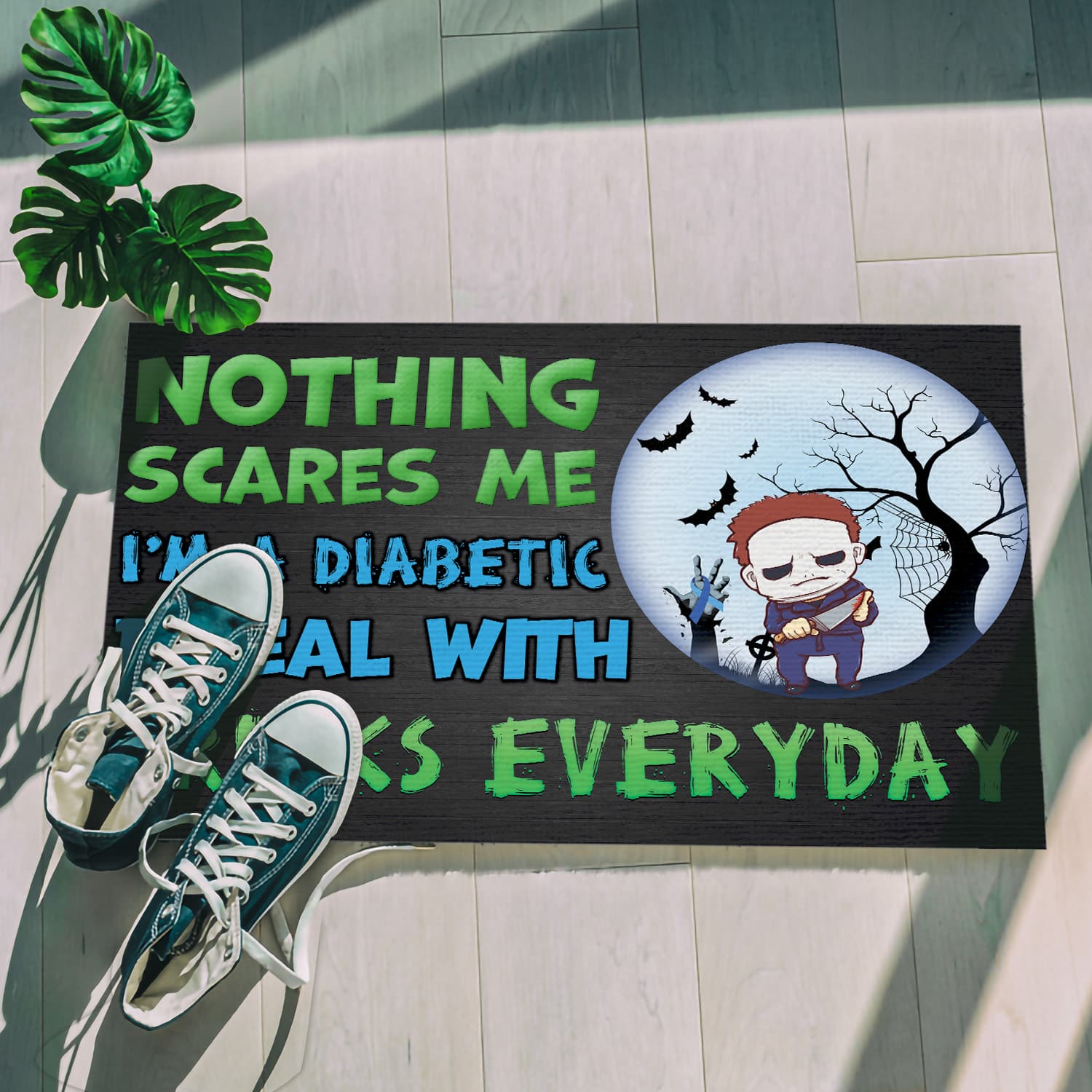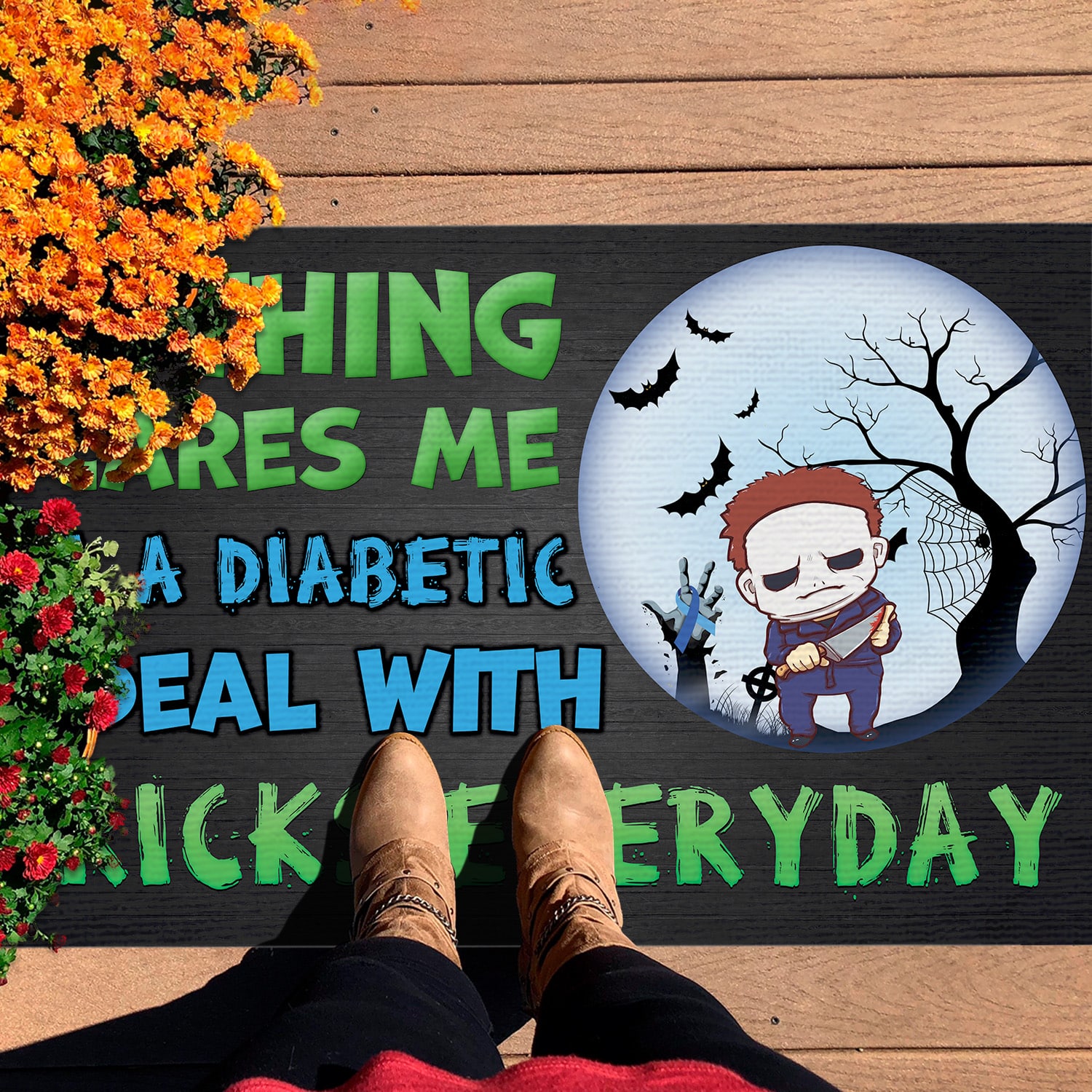 Are you spending too much time to find creative merchandise for you or suitable & special gifts for your mommy, your daddy, your son, your daughter, your children, your friends or someone you love? The struggle is over because we have various Nothing Scares Me I’m Michael A Diabetic Myers I Deal With Pricks Everyday Doormat, Funny Diabetes Halloween Custome Meme Saying Door Mat, Funny Horror Character Diabetes Zombie Doormat, Scary Halloween Diabetes Meme Saying Doormat, Funny diabetes awareness Halloween Doormat which will make perfect presents for your beloveds. In order to make your present stand out, we have created lots of unique and awesome customized photo gifts & personalized designs.