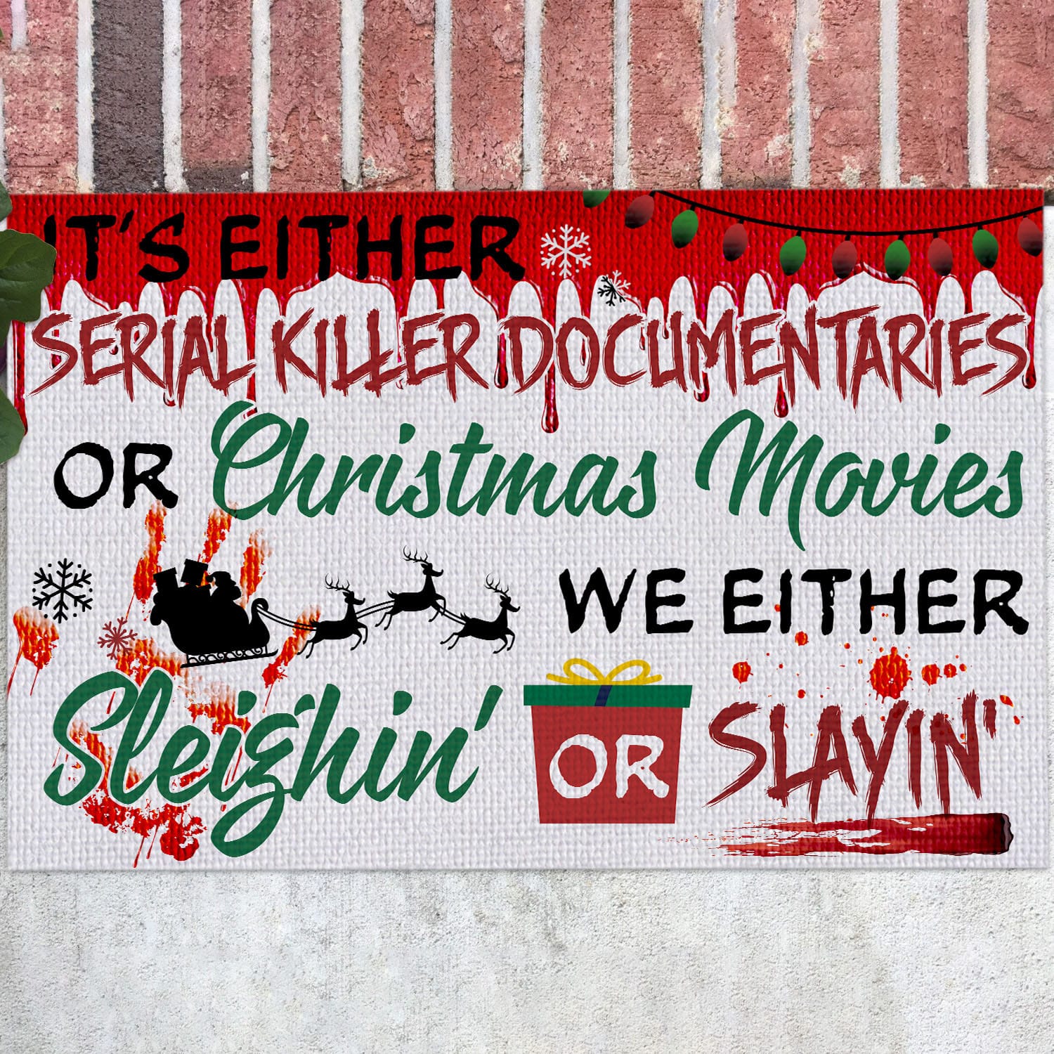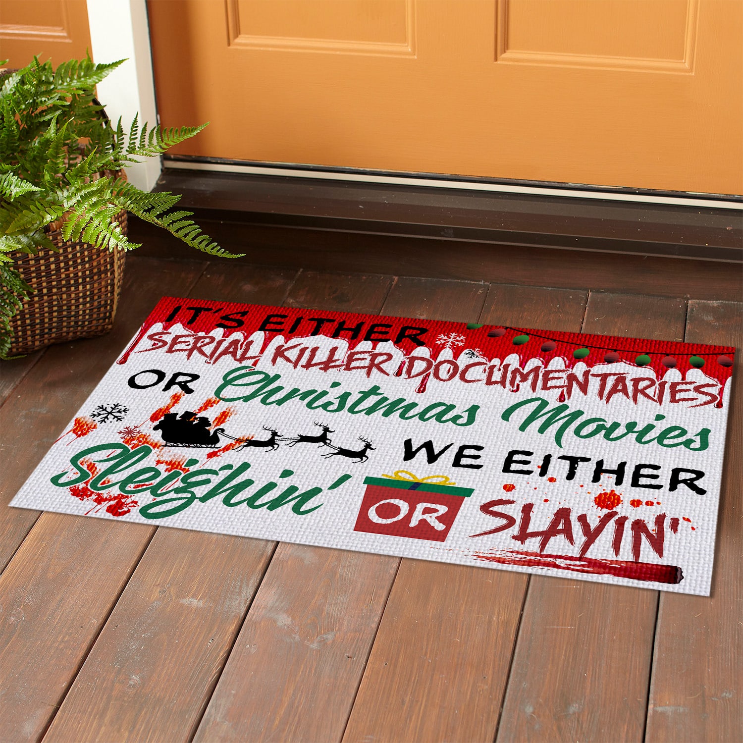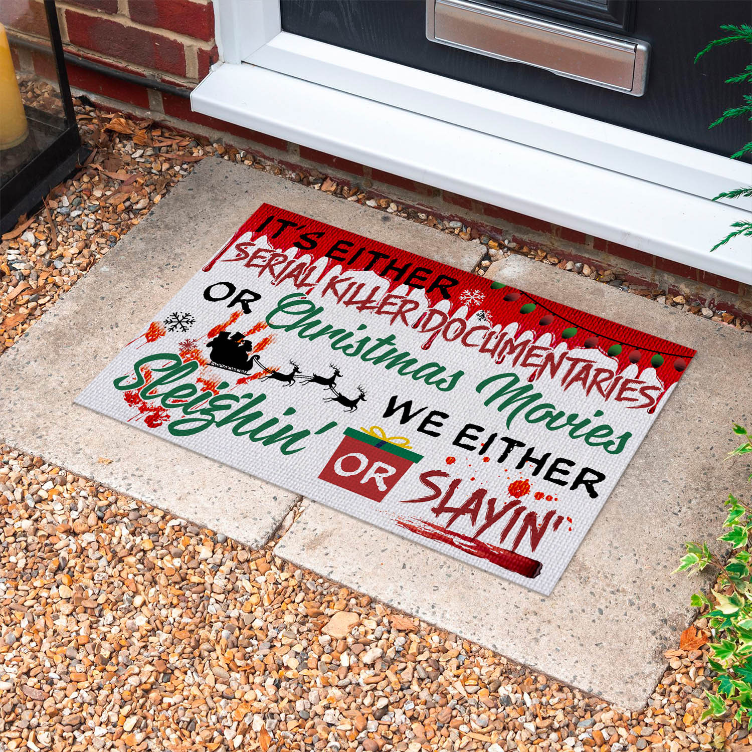 Let’s Shop It’s Either Serial Killer Documentaries or Christmas Movies Sleighin or Slayin Doormat – Halloween Christmas Doormat!