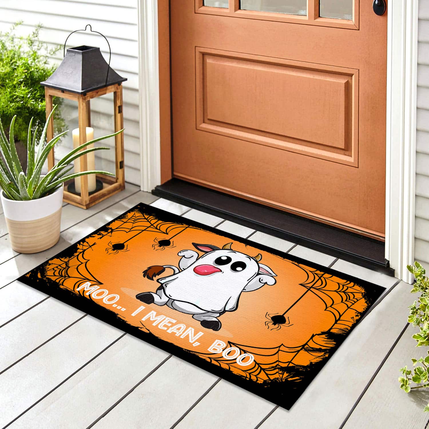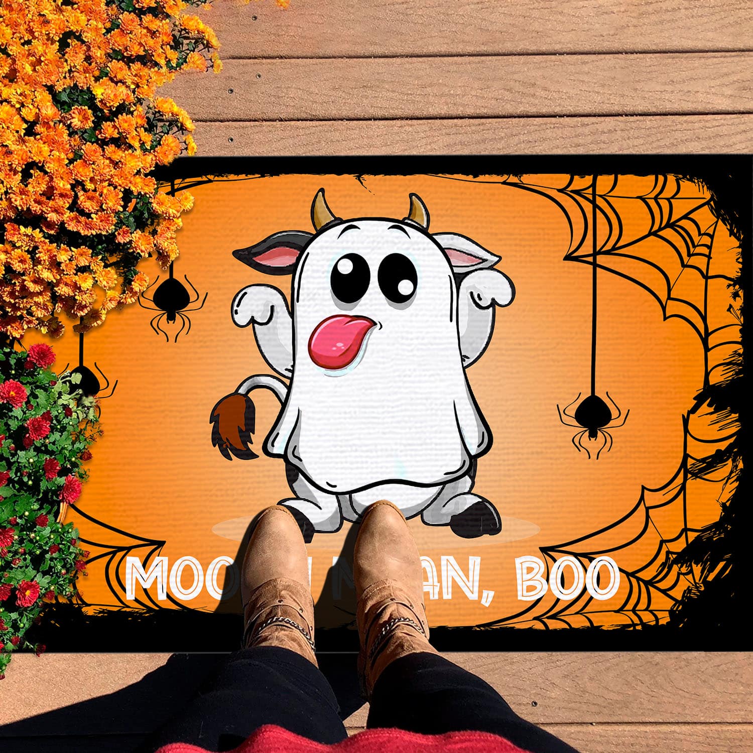 Let’s Shop Moo I Mean Boo Funny Cow Ghost Halloween House Doormat – Cow Halloween Outdoor Indoor Doormat!