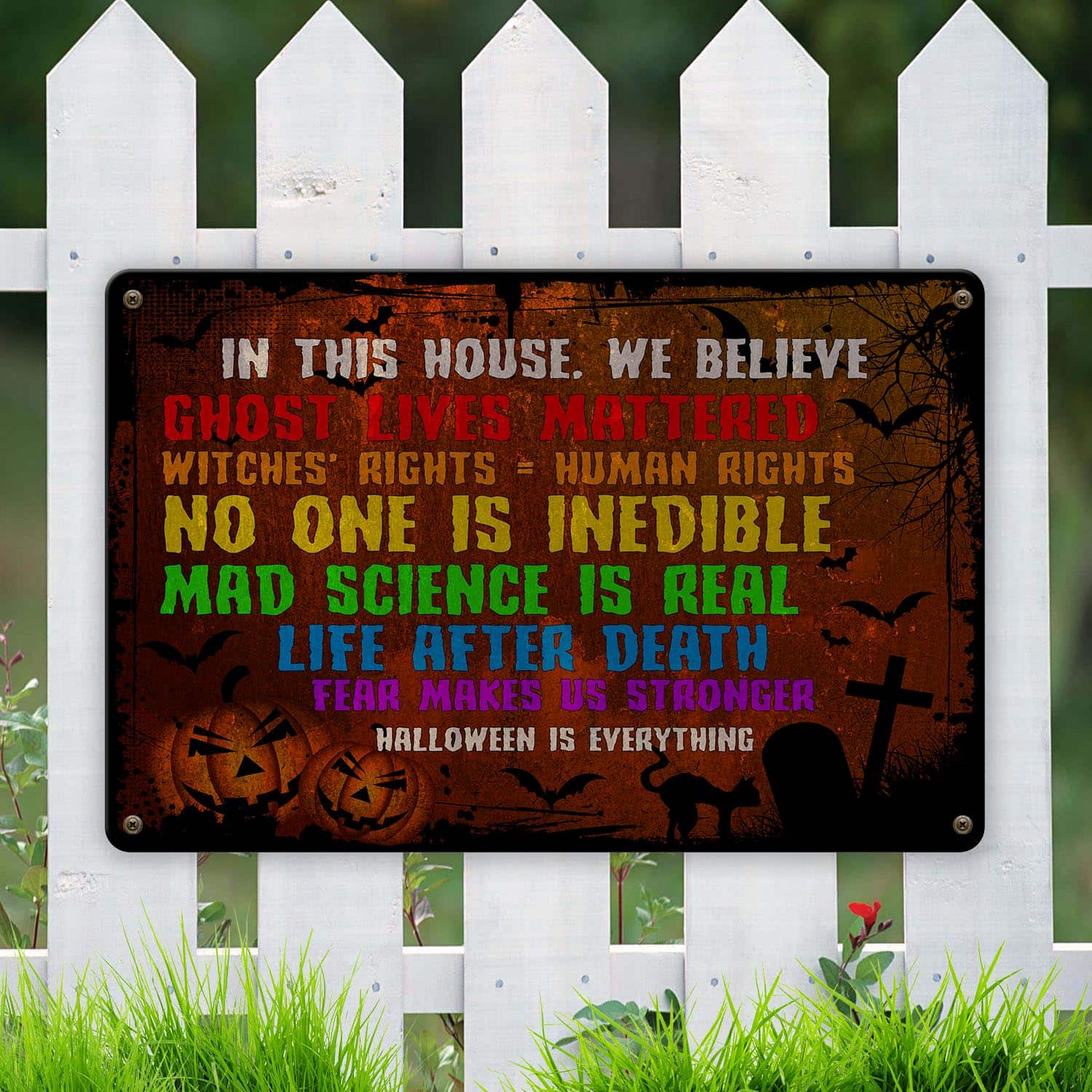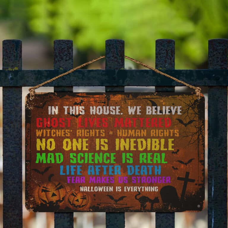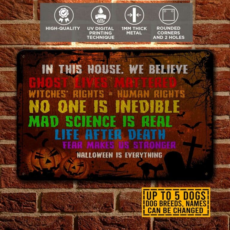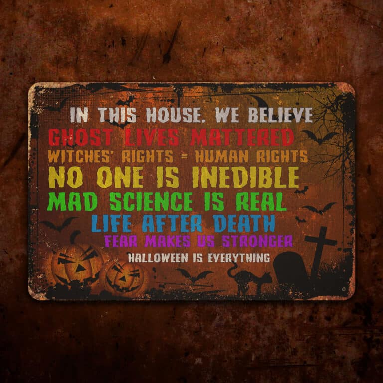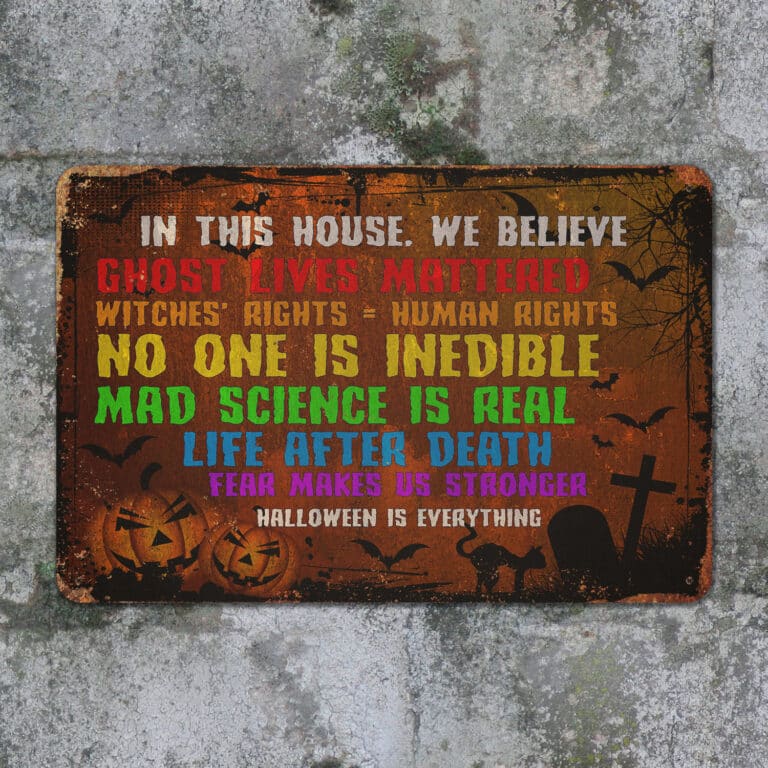 Let’s Shop In This House We Believe Ghost Lives Mattered Halloween Is Everything Decorative Metal Sign – Outdoor Decor!
