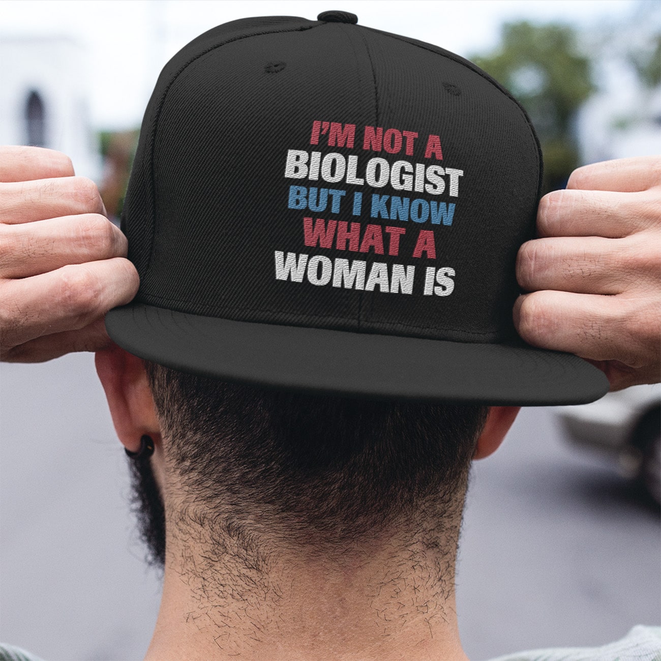 Let’s Shop I’m Not A Biologist But I Know What A Woman Is Funny Twill Cap – High-Profile Snapback Hat – Trucker Hat!
