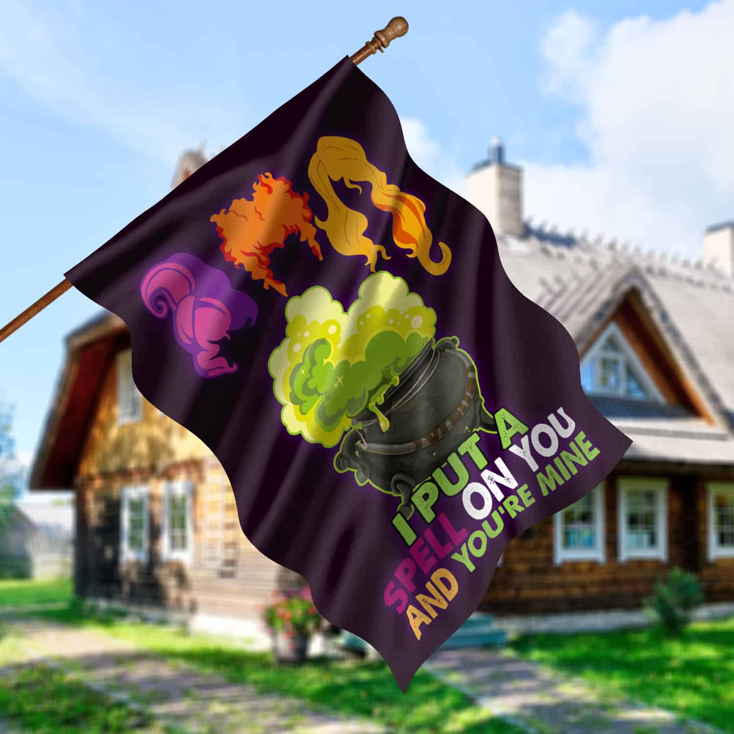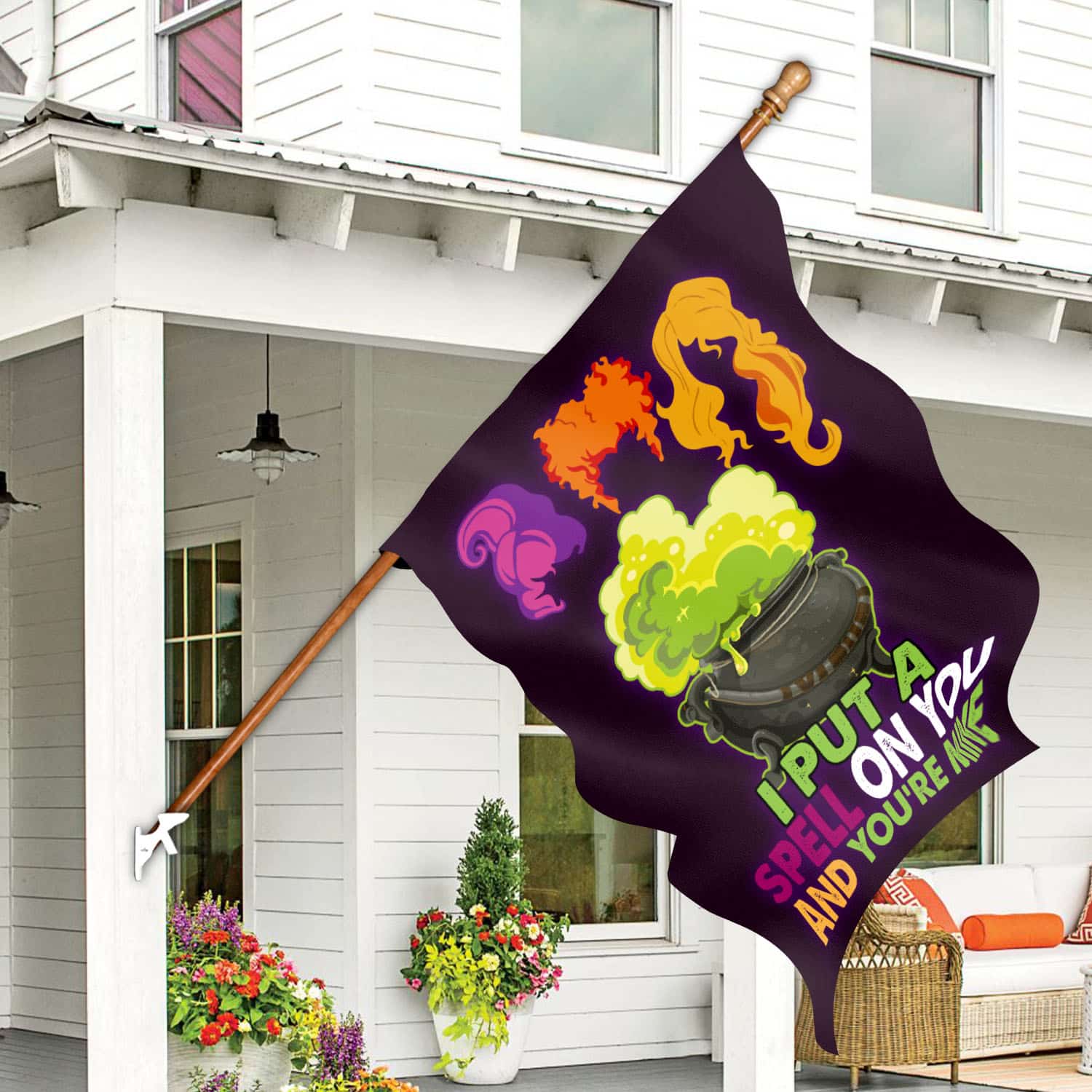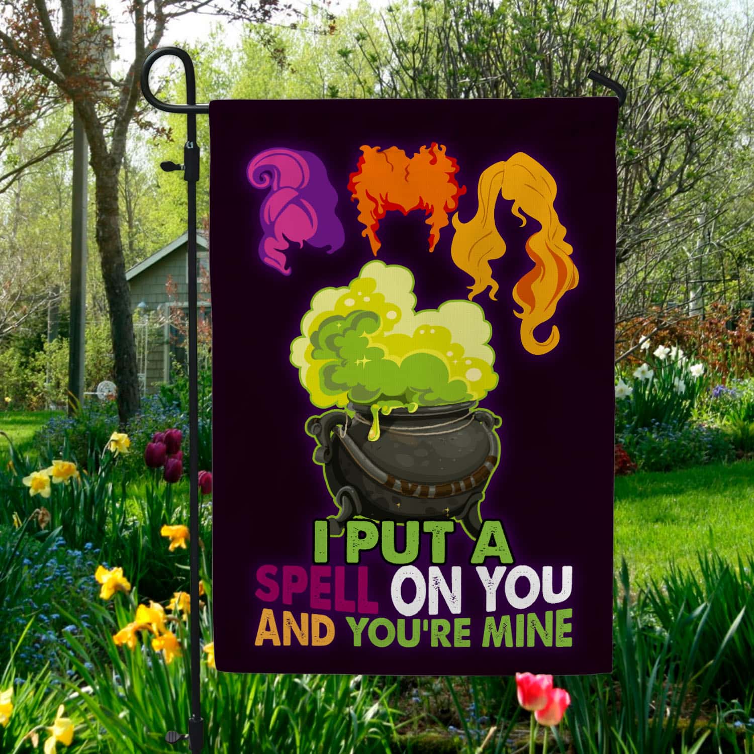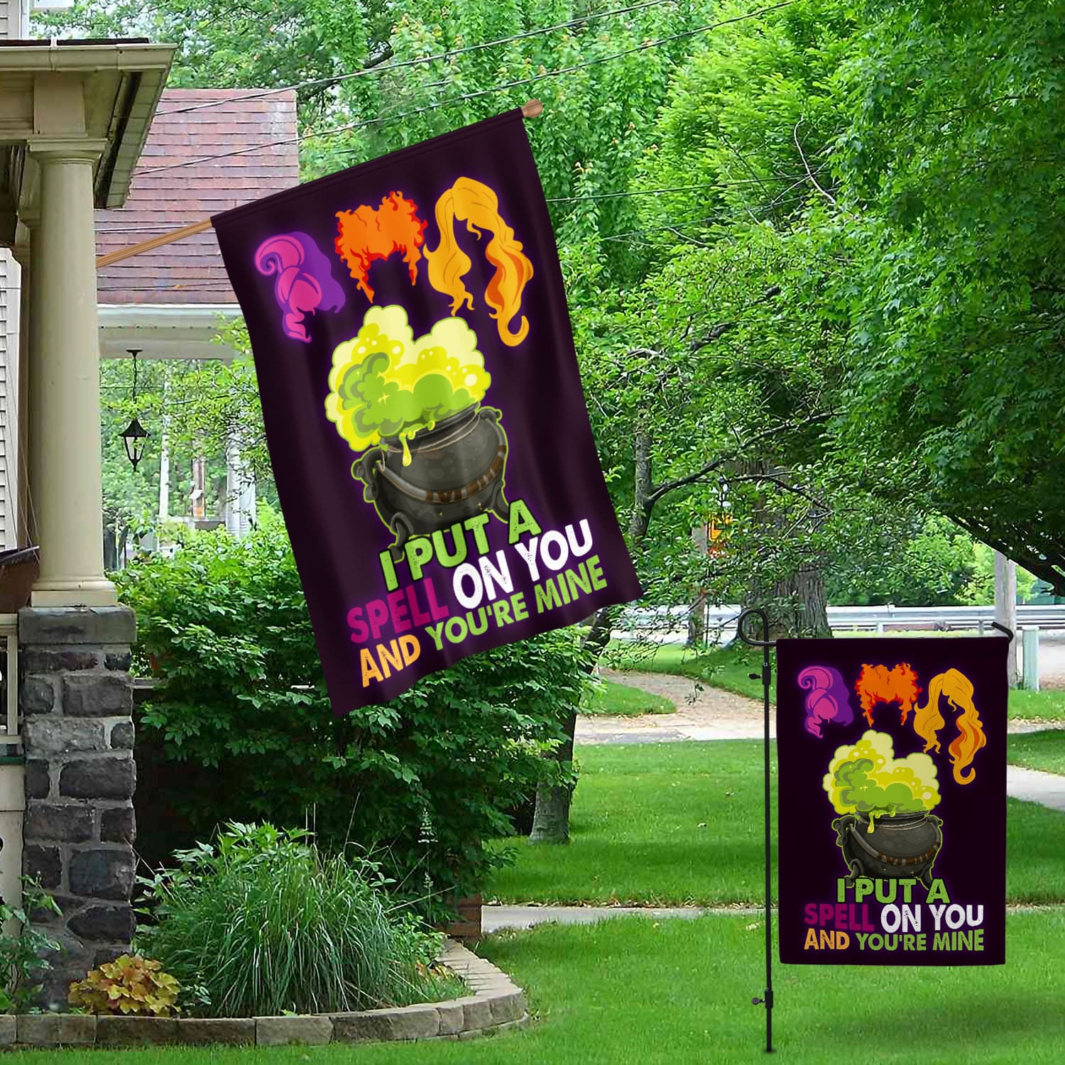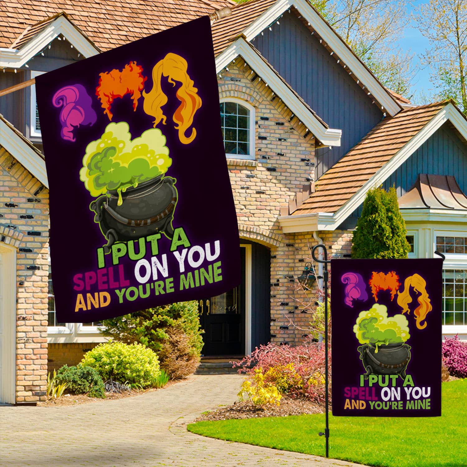 Let’s Shop Hocus Pocus I Put A Spell On You and You’re Mine Outdoor Garden Flag – House Flag – Wall Flag!