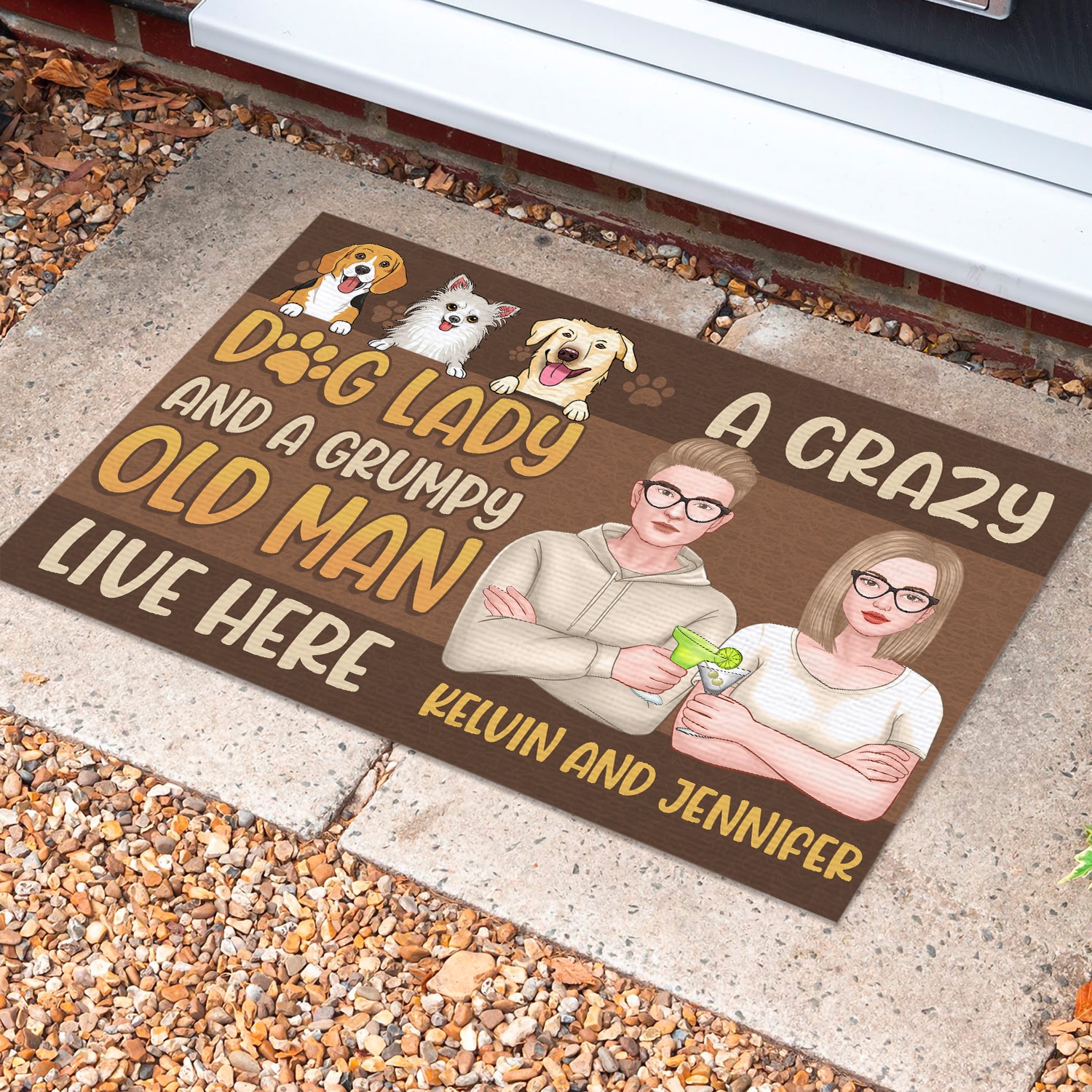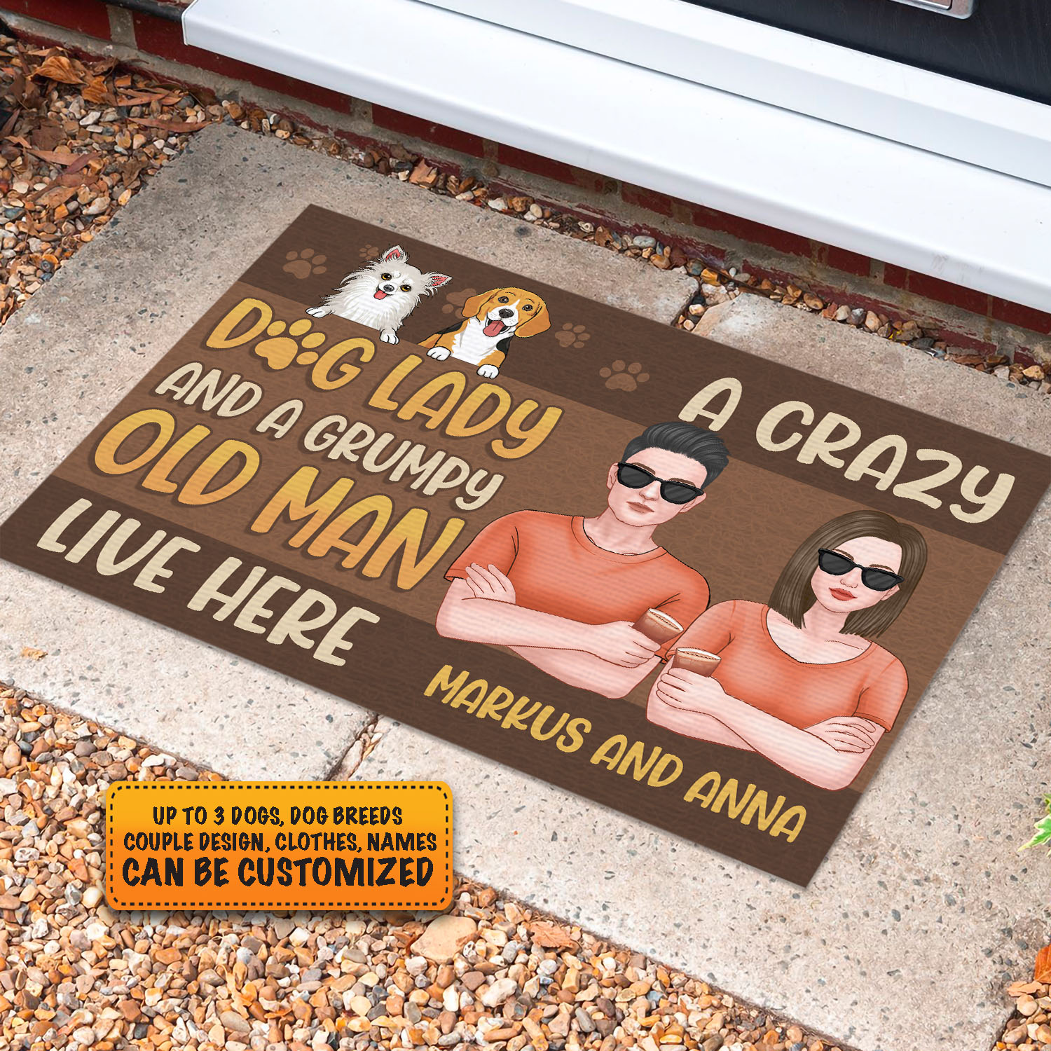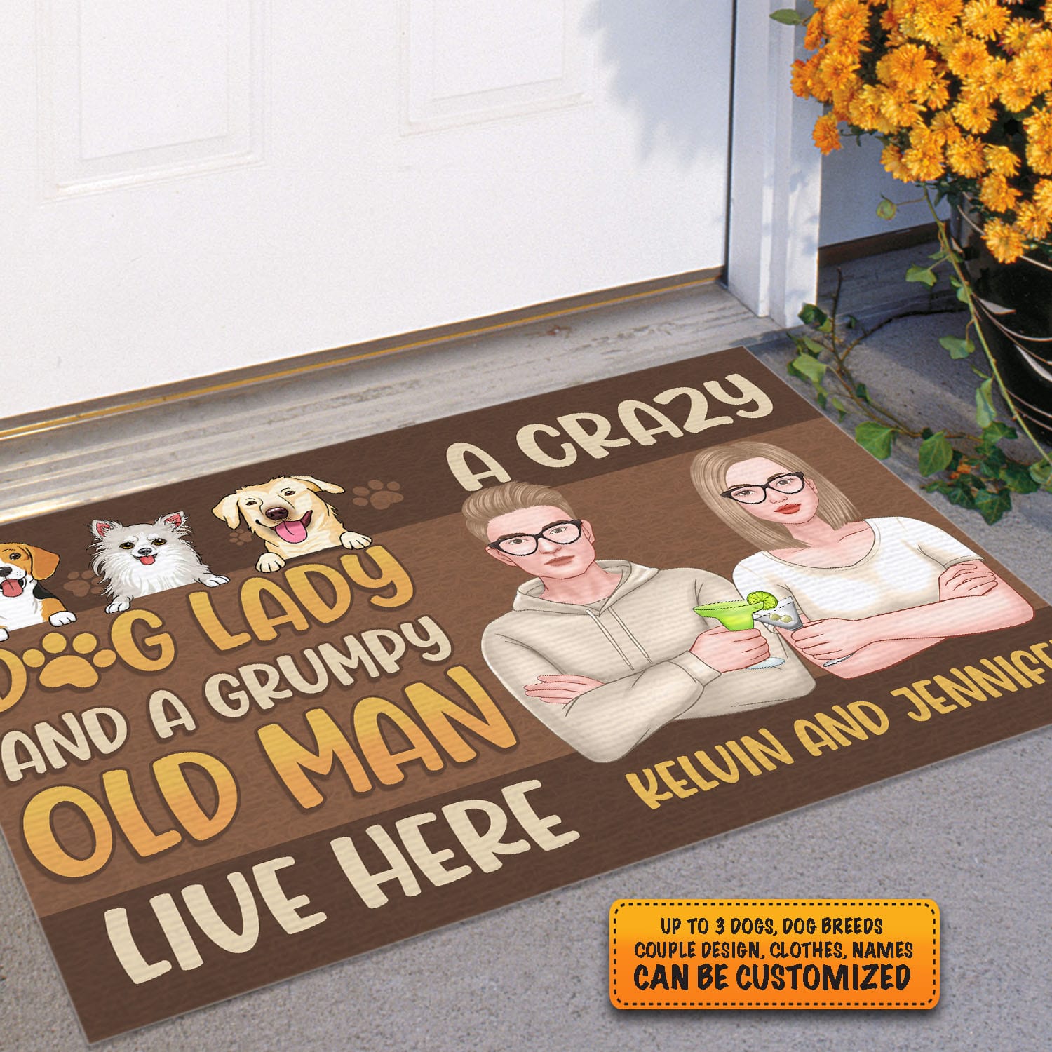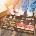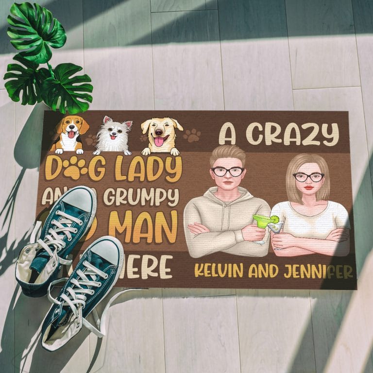 Let’s Shop Personalized Dog Breeds And Custom Couple Design Gifts A Crazy Dog Lady and A Grumpy Old Man Live Here Entrance Decorative Doormat!