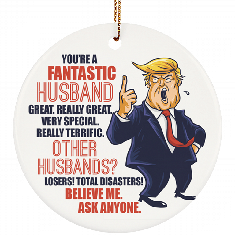 Shop You’re Fantastic Husband Believe Me Funny Trump Ornament Keepsake – Flat Circle Porcelain Ceramic Ornament.