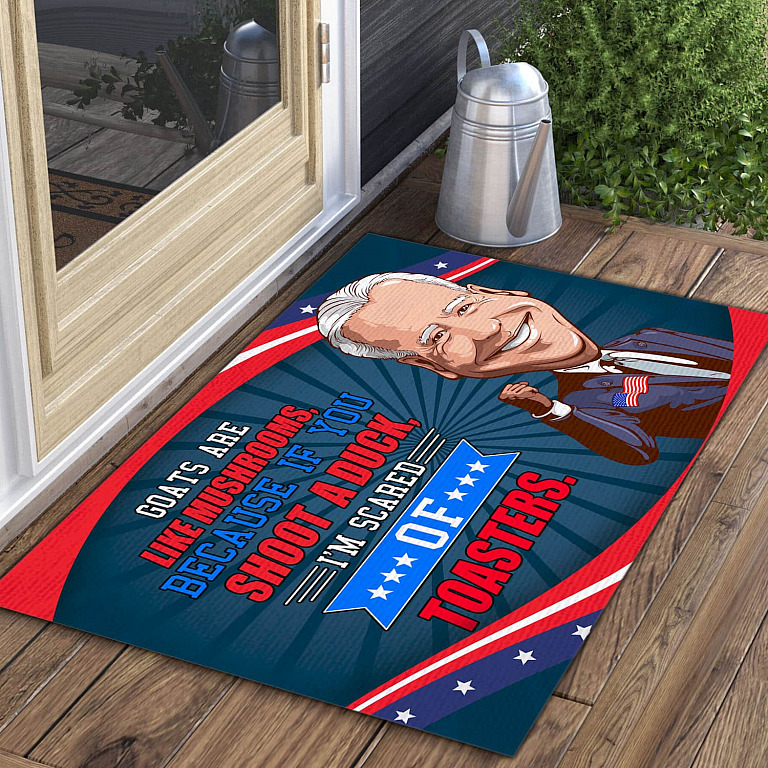 Let’s Shop Goats Are Like Mushrooms Because if You Shoot a Duck Funny Joe Biden Quote Saying Entrance Indoor Outdoor Decorative Doormat!