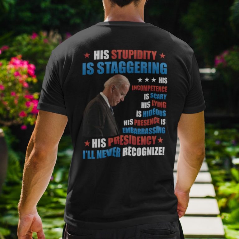 Biden His Stupidity Is Staggering His Incompetence Is Scary His Lying Is Hideous Print On Back T-Shirt Only