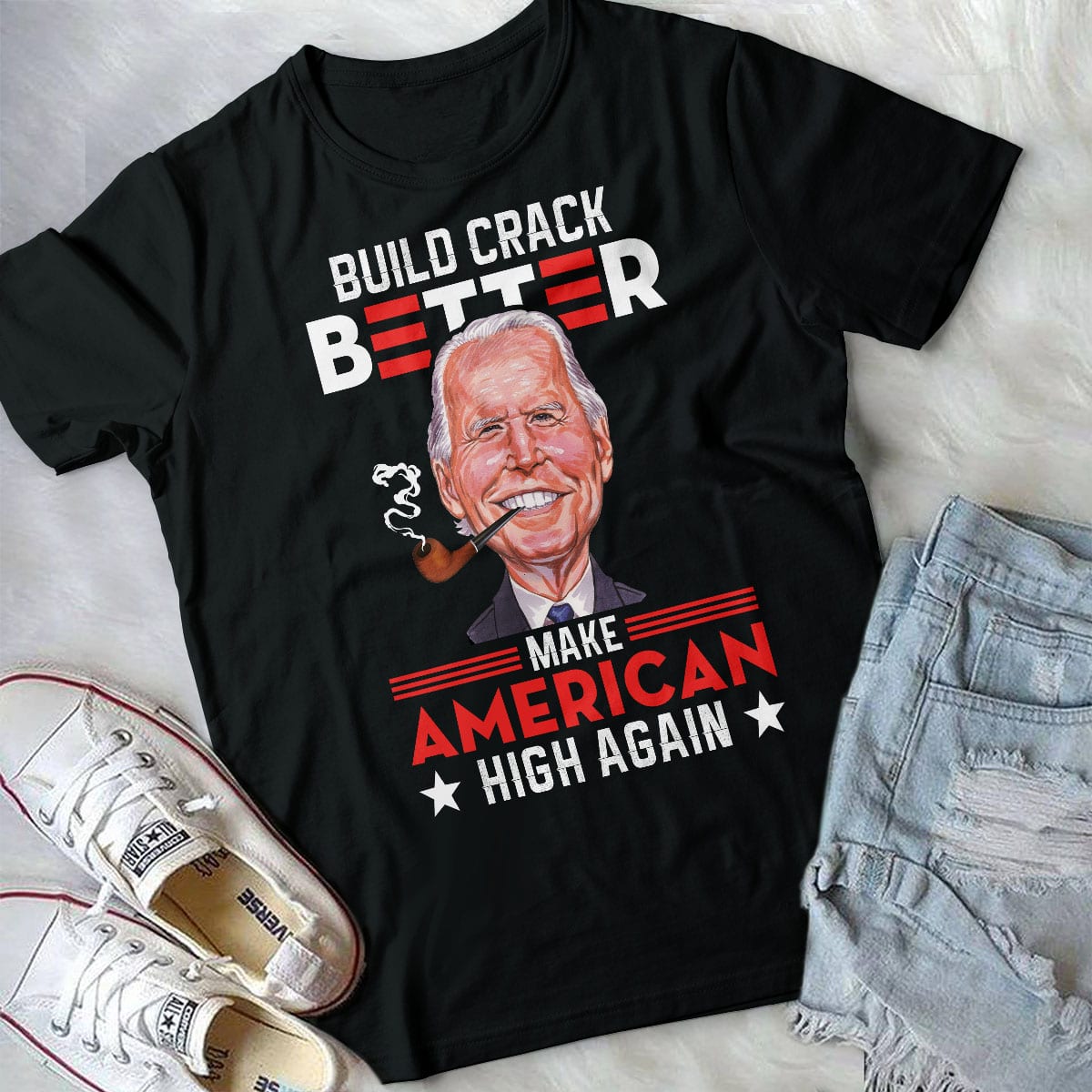 Let’s Shop Build Crack Better Make American High Again Funny Biden T-Shirt!