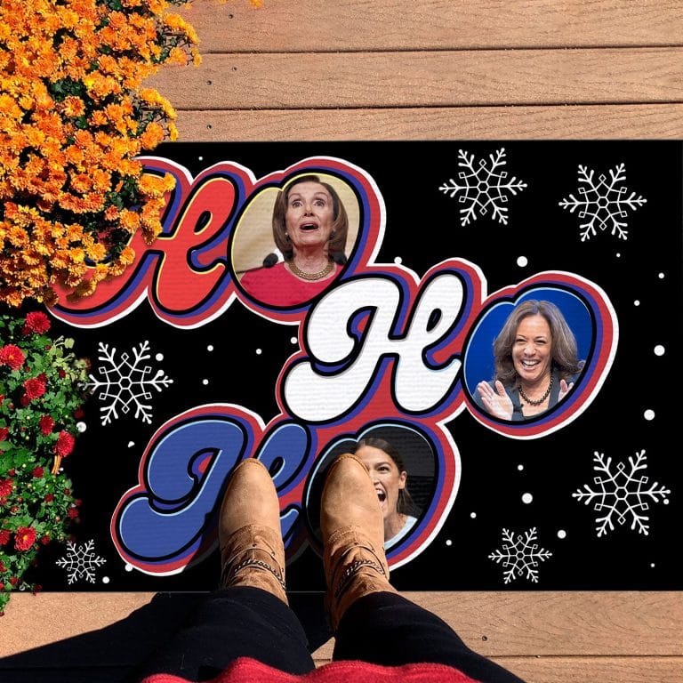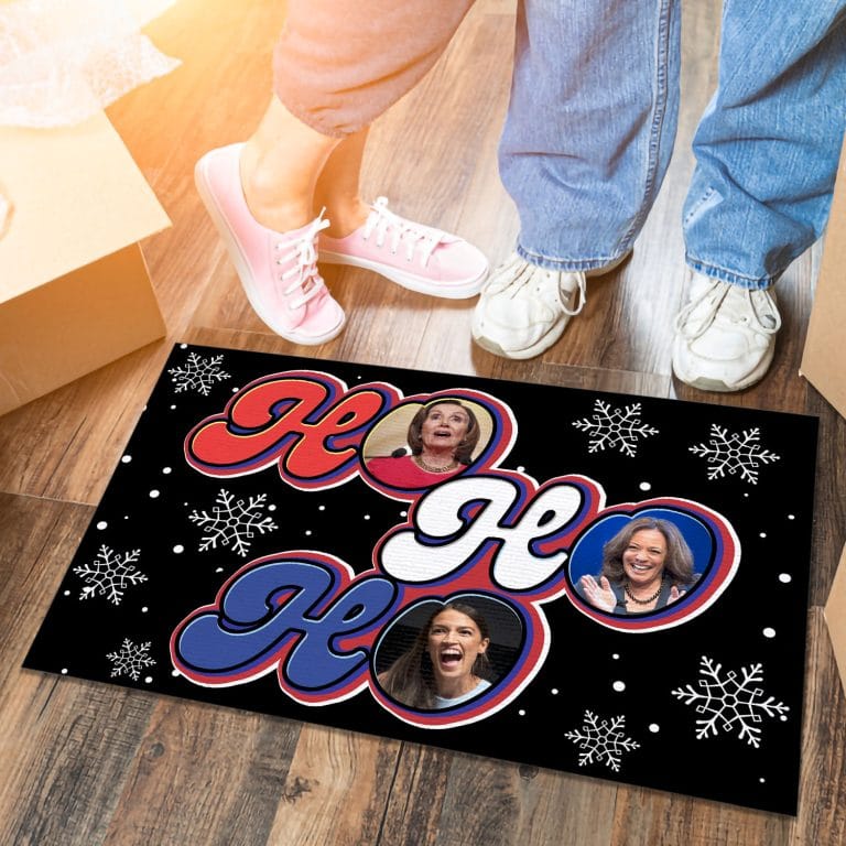 Let’s Shop Ho Ho Ho Funny Nancy Kamala Cortez Christmas House Doormat – Funny Political Outdoor Indoor Doormat!