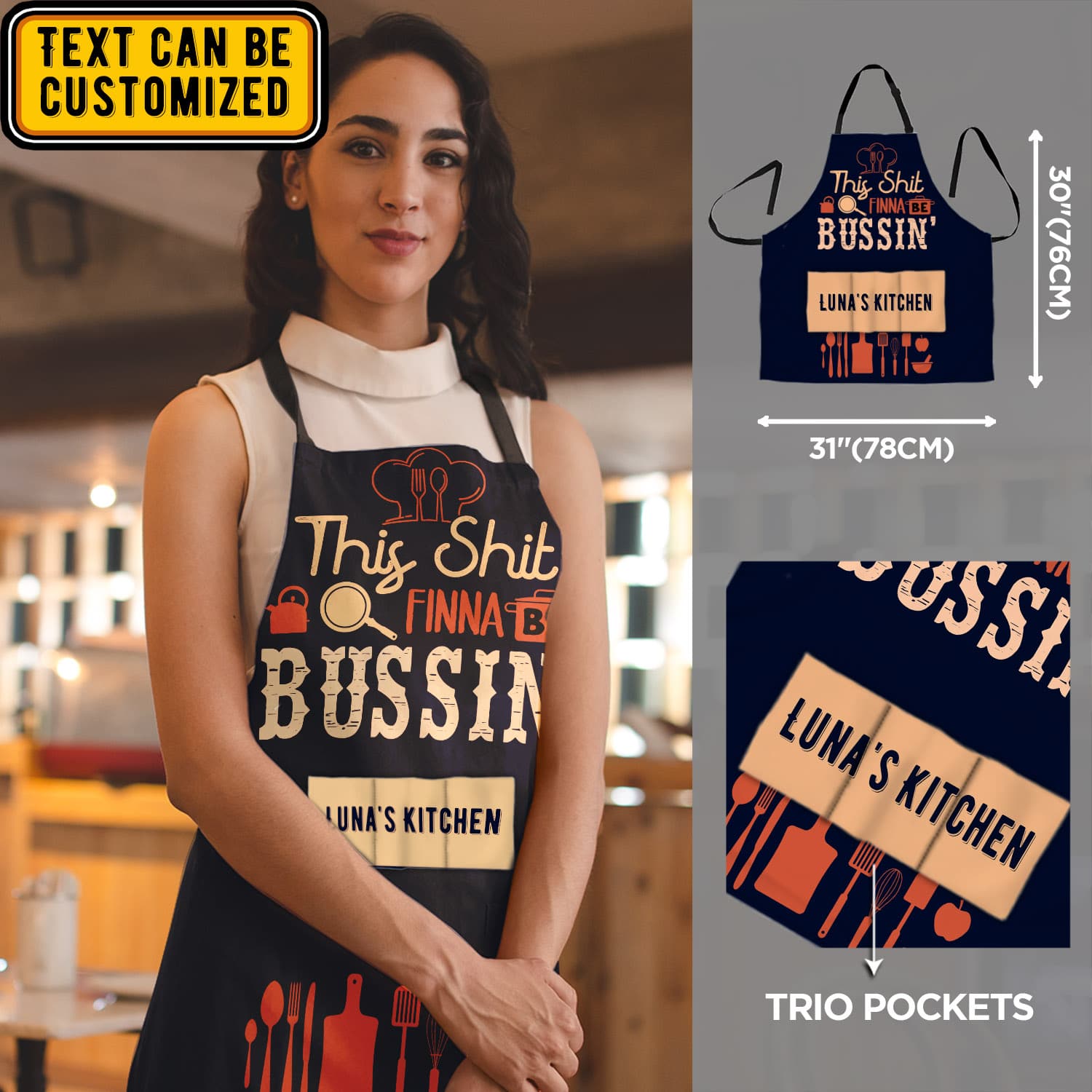 Let’s Shop Personalized Kitchen Aprons Gifts This Shit Finna Be Bussin’ Funny Cooking Apron With Three Pockets – Adjustable Neck Strap!