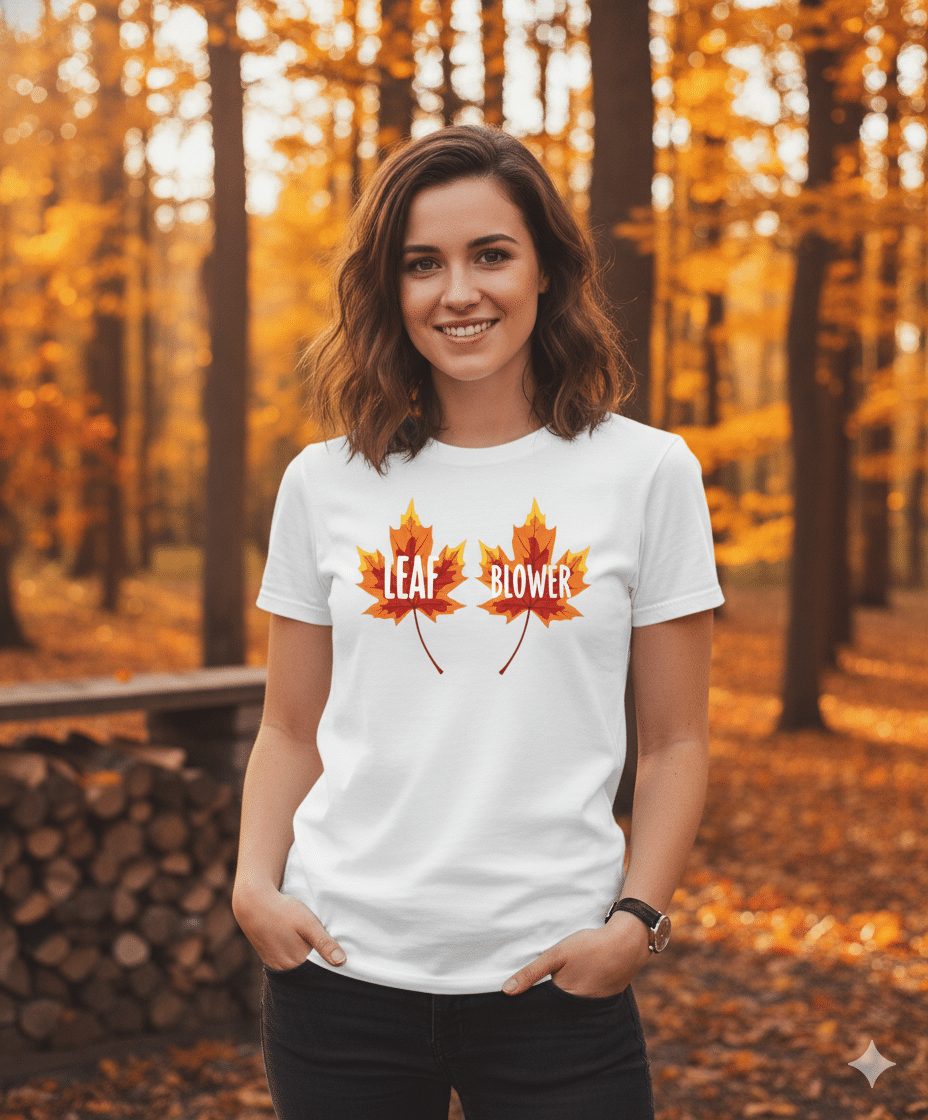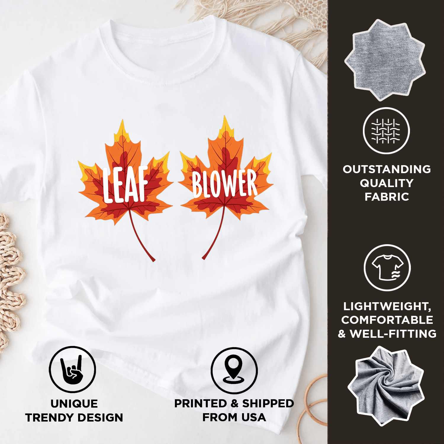 Funny Leaf Blower Fall Thanksgiving Matching T-Shirt – V-Neck Shirt
