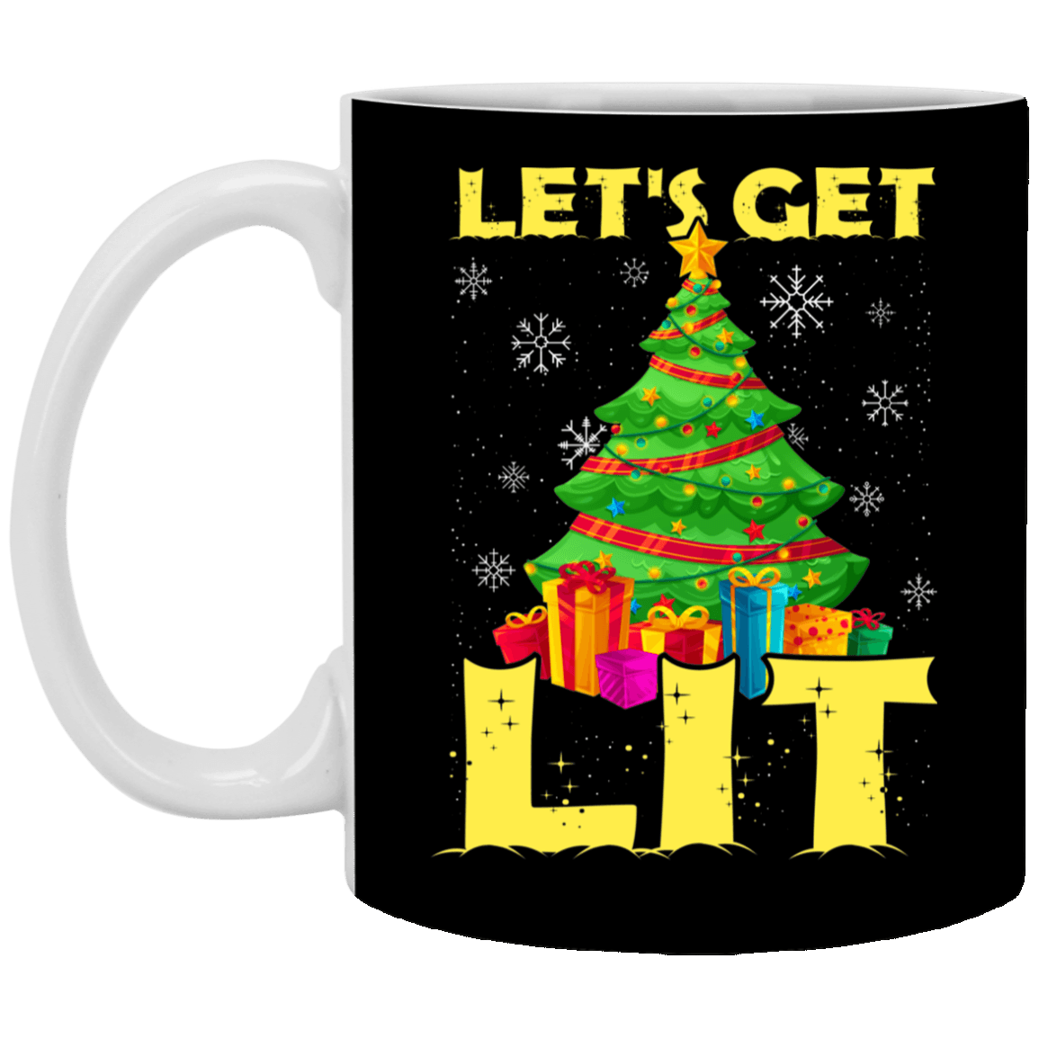 Shop Funny Let’s Get Lit Christmas Lights Tree Ceramic Mugs and Beer Stein.