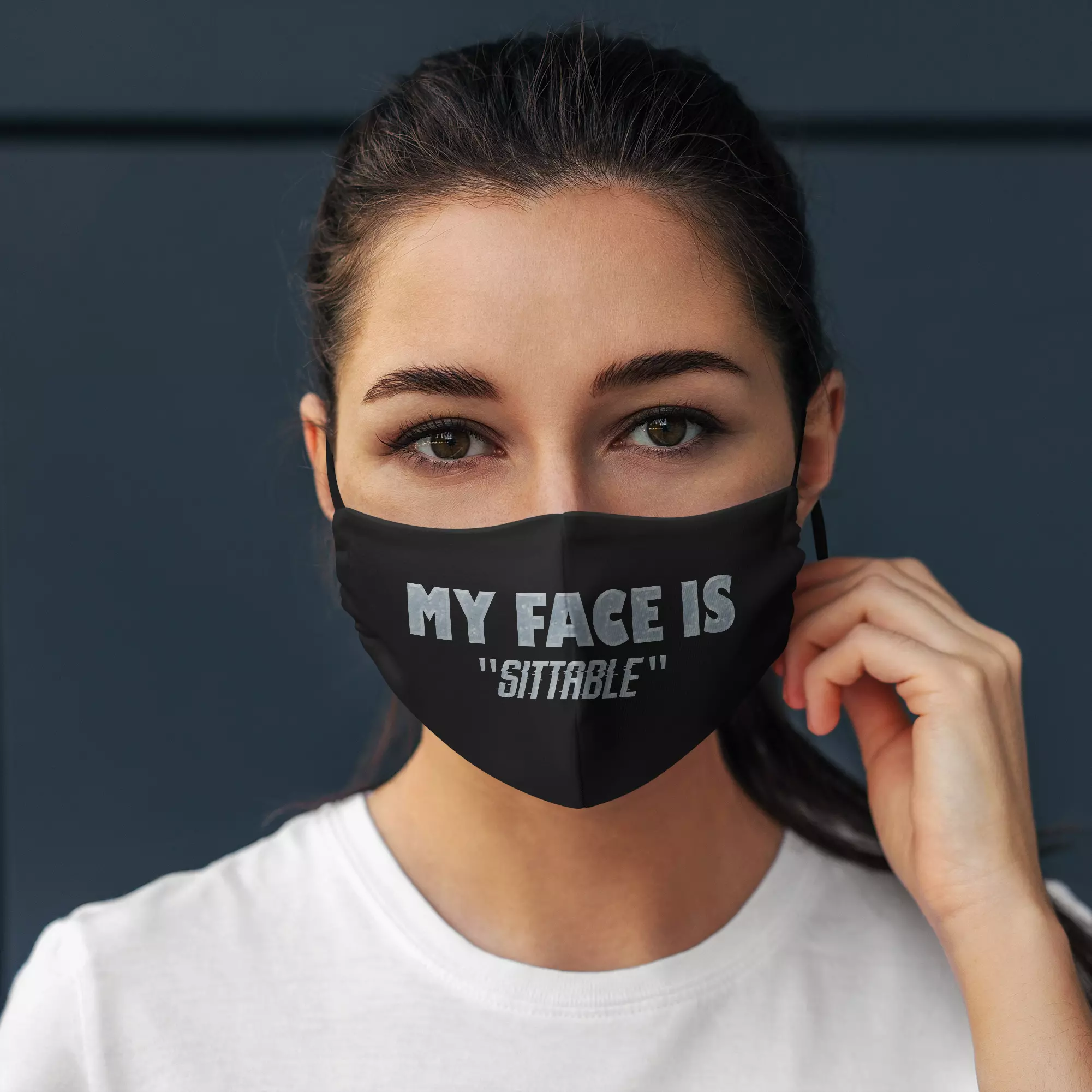 Let’s Shop My Face Is Sittable Funny Saying Washable Reusable Custom Printed Cloth Face Mask Cover!