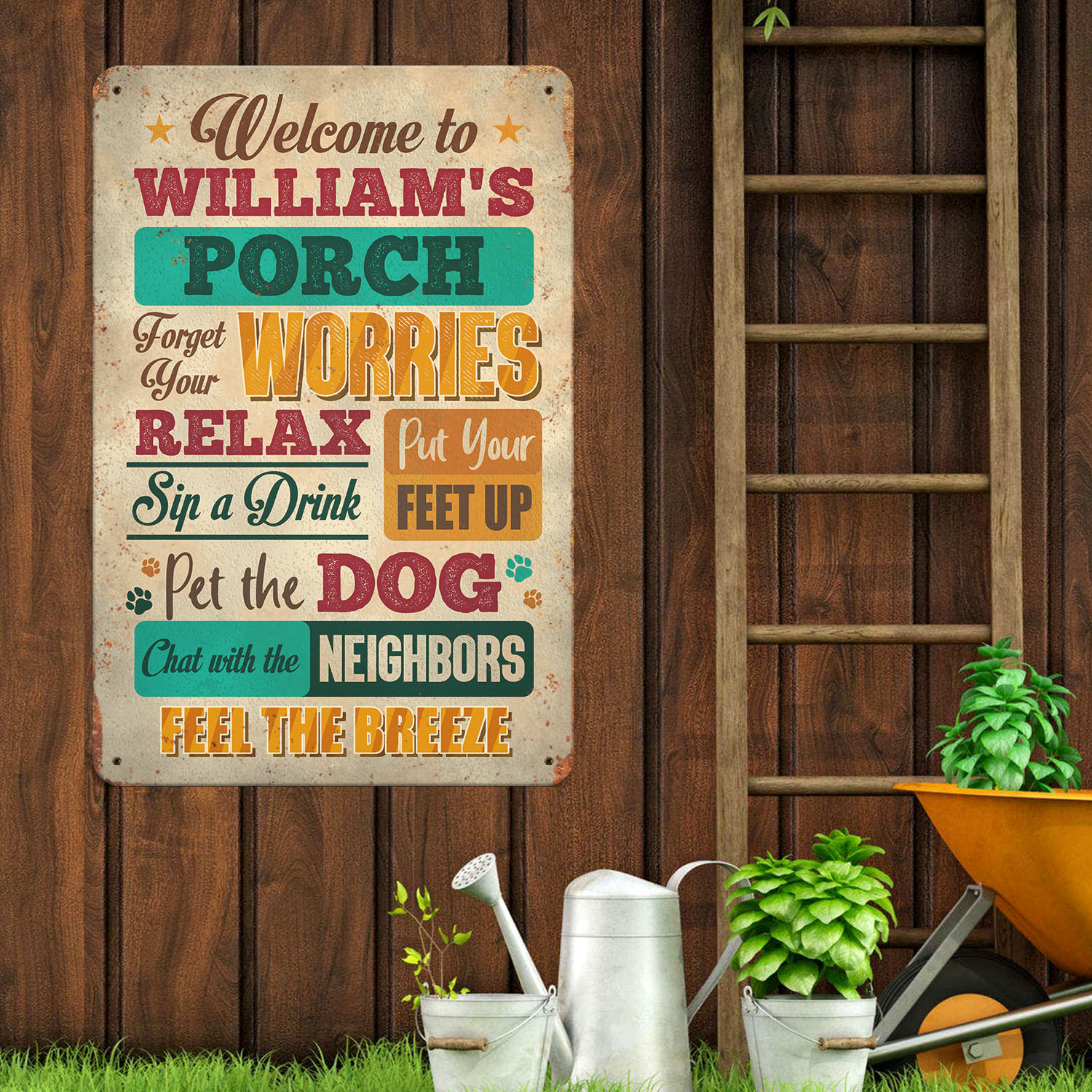 Let’s Shop Personalized Welcome To Porch Forget Your Worries Relax Sip A Drink Decorative Metal Sign – Indoor Outdoor Decor!